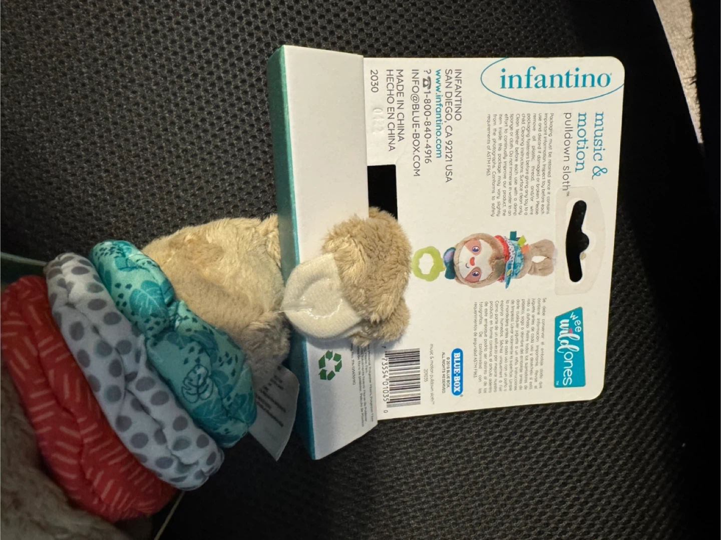 This is a cute Infantino music & motion pulldown sloth toy! It's in great condition and ready for a new home. This toy features a soothing melody and is designed for ages 0m+. It's BPA free too