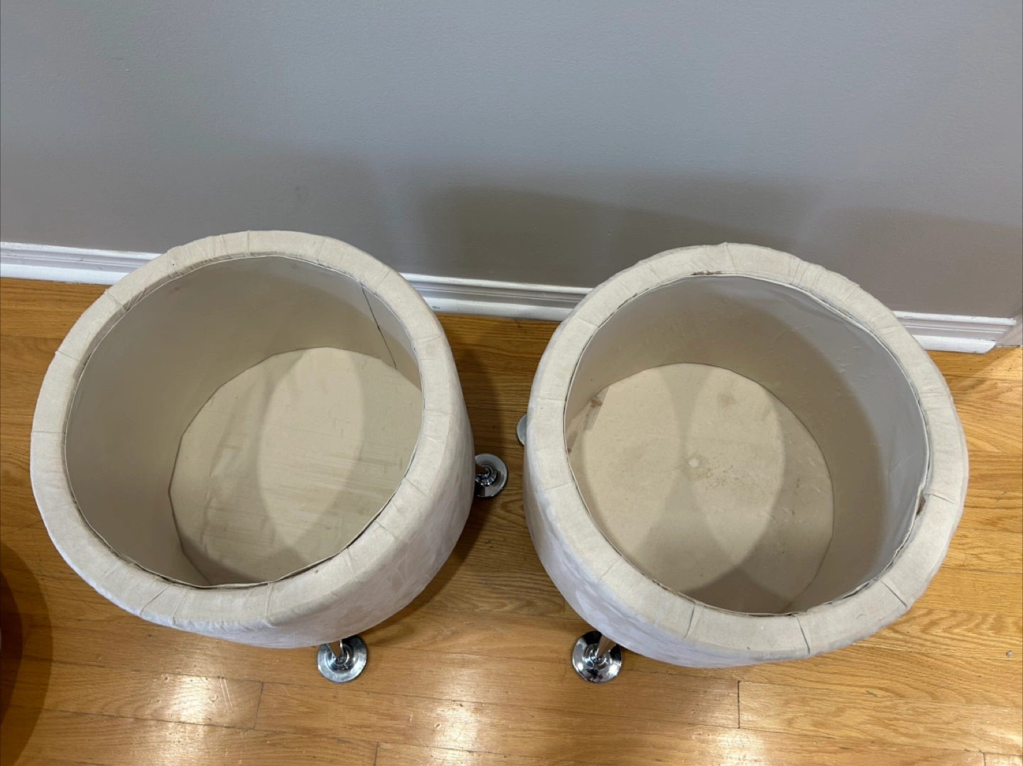 Pair of Cream Upholstered Storage Ottomans