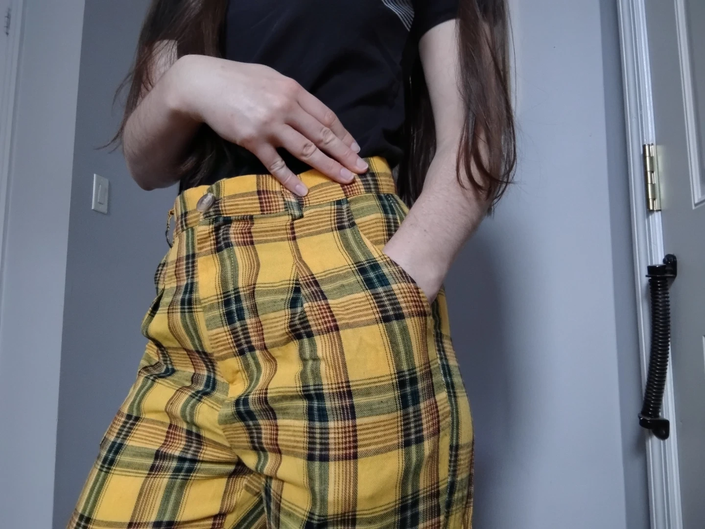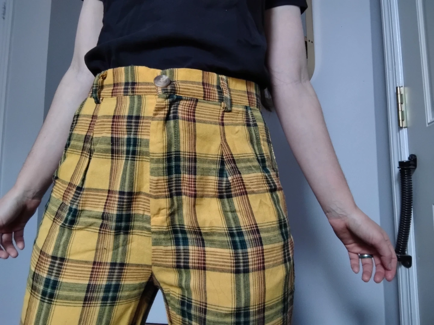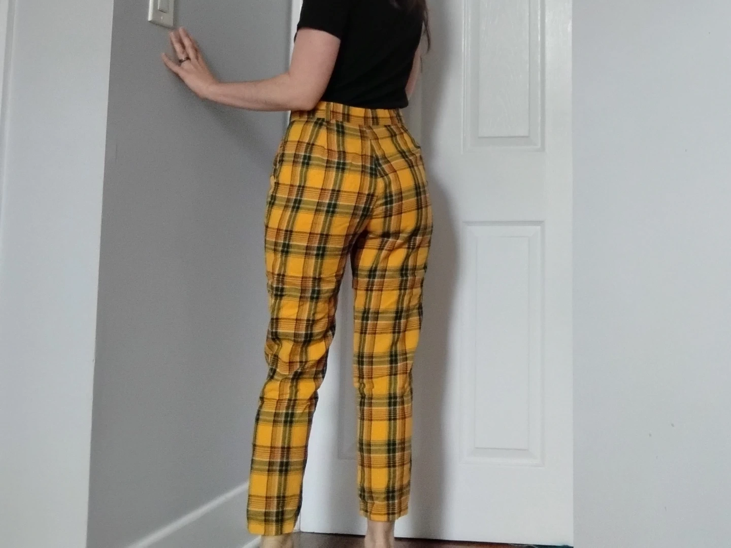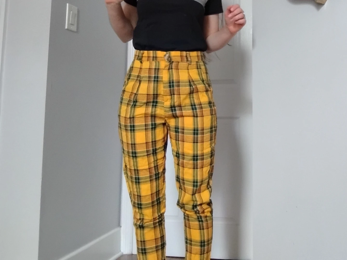 Yellow Clueless-esque plaid pants, perfect for some color in the office.