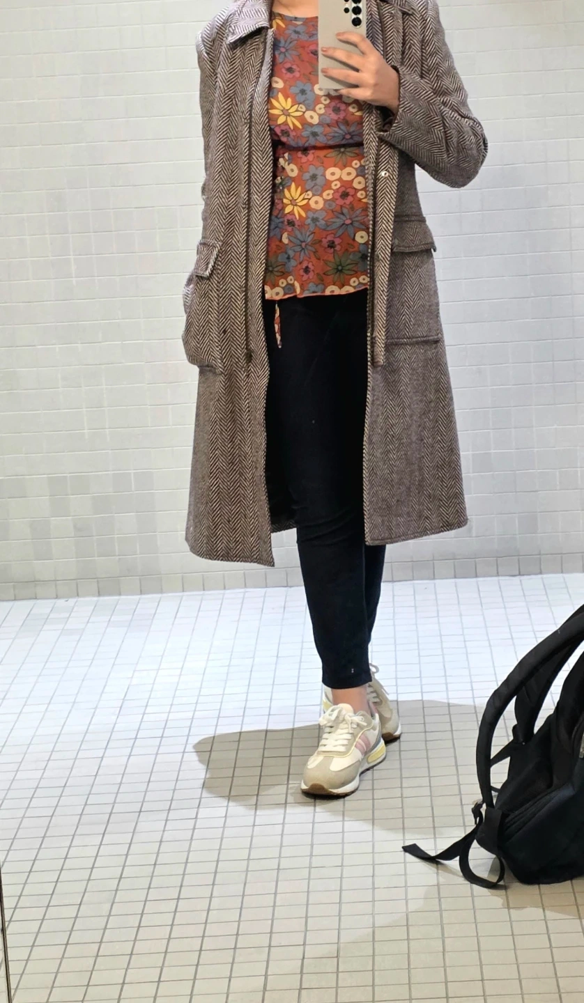 Women's Herringbone Double-Breasted Long Coat