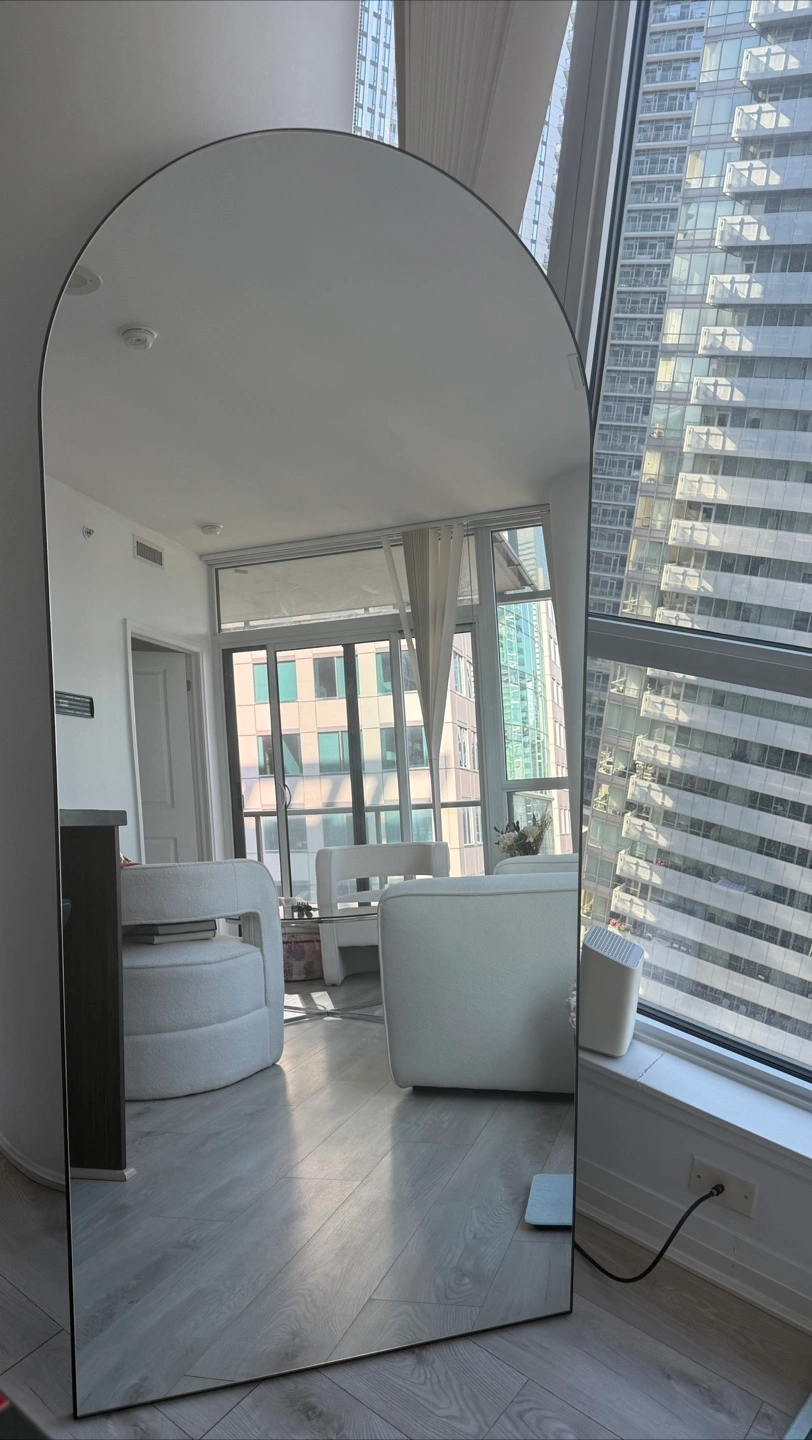 Large arched mirror, floor-length. Sleek black frame. Perfect for any room. Excellent condition. 32’’ width 71’’ length
