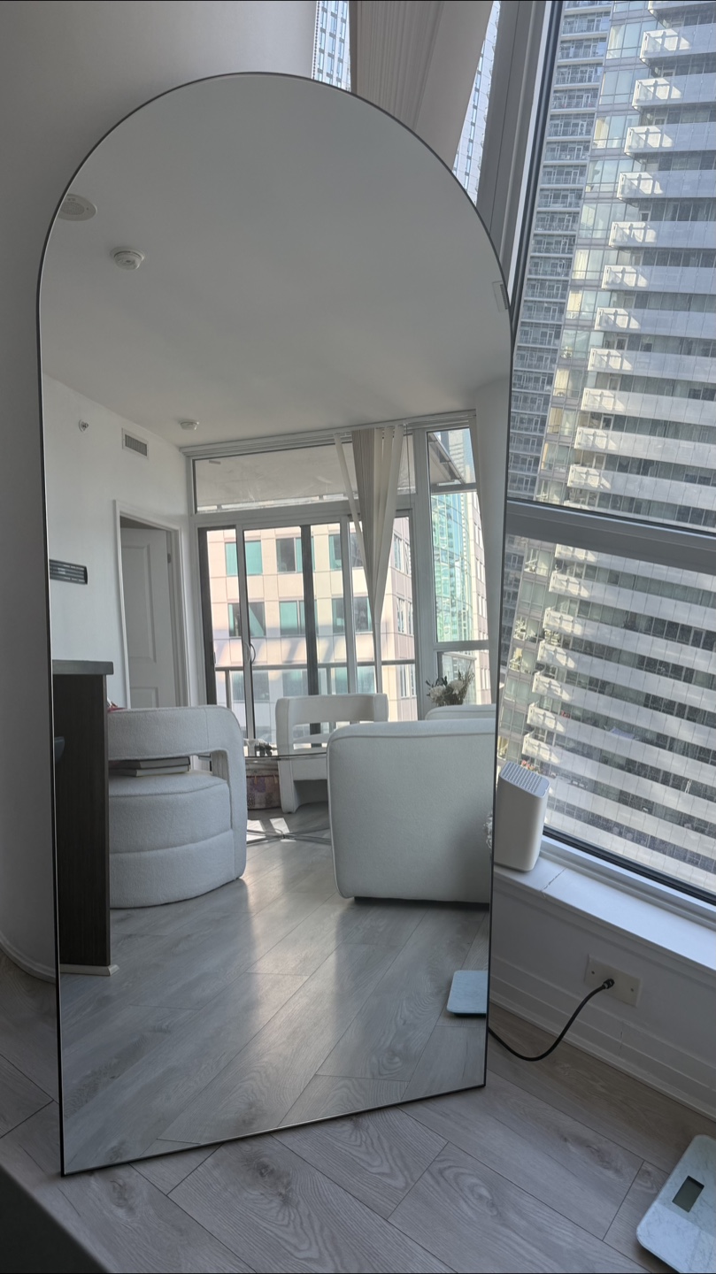 Large arched mirror, floor-length. Sleek black frame. Perfect for any room. Excellent condition. 32’’ width 71’’ length