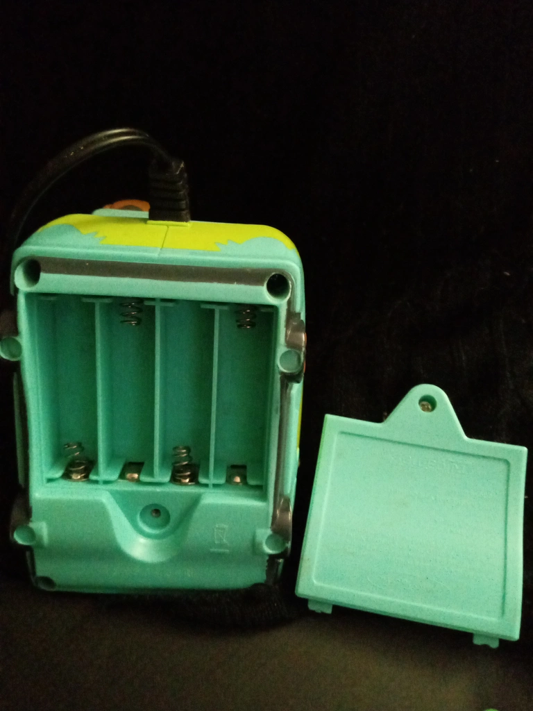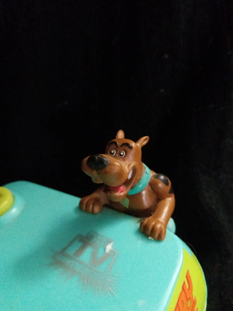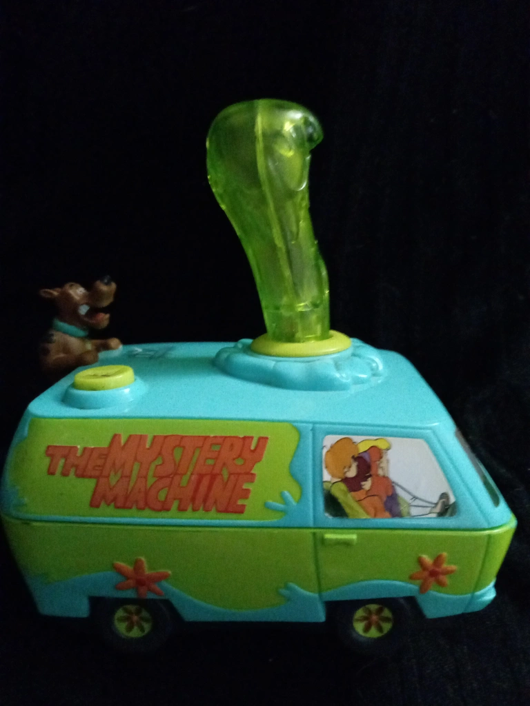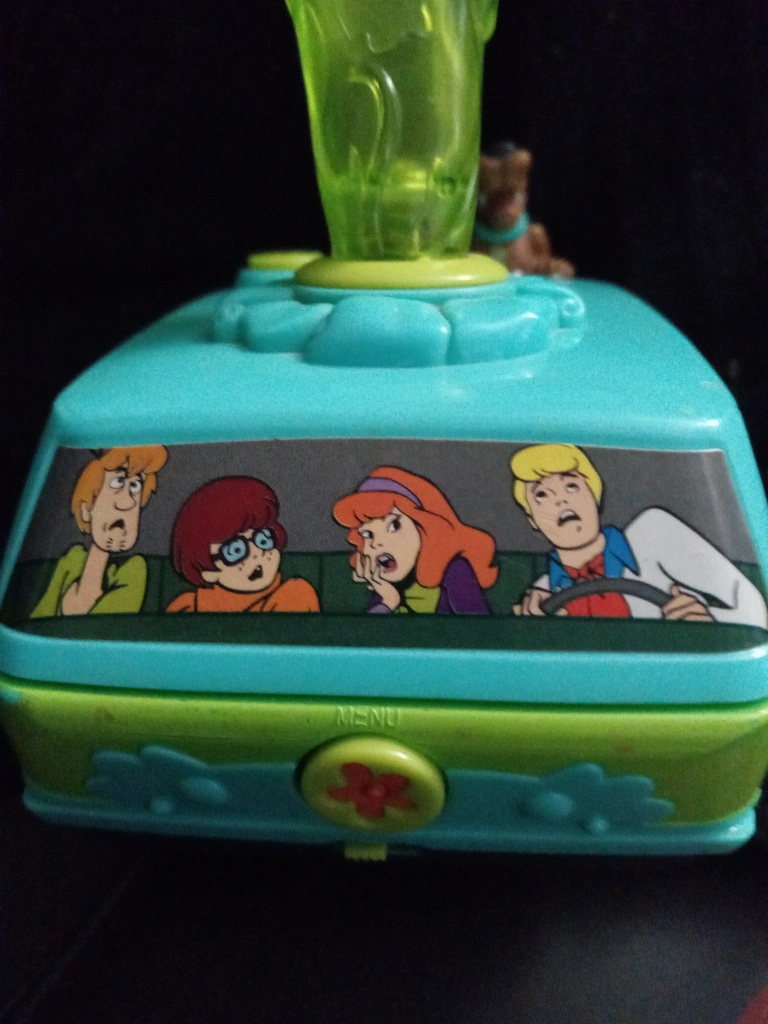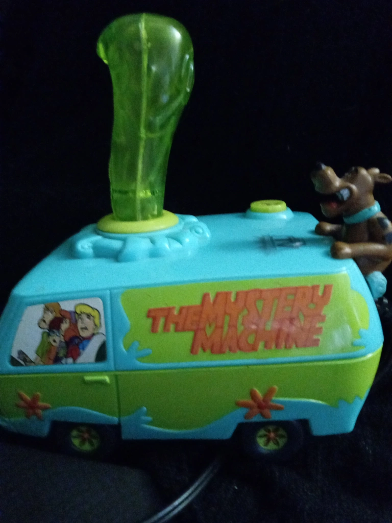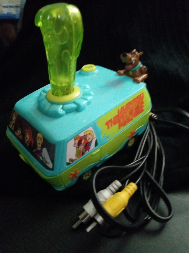 Vintage Scooby Doo Mystery Machine handheld game. Features light-up ghost and button controls. Includes power cord. Collectible item for fans.