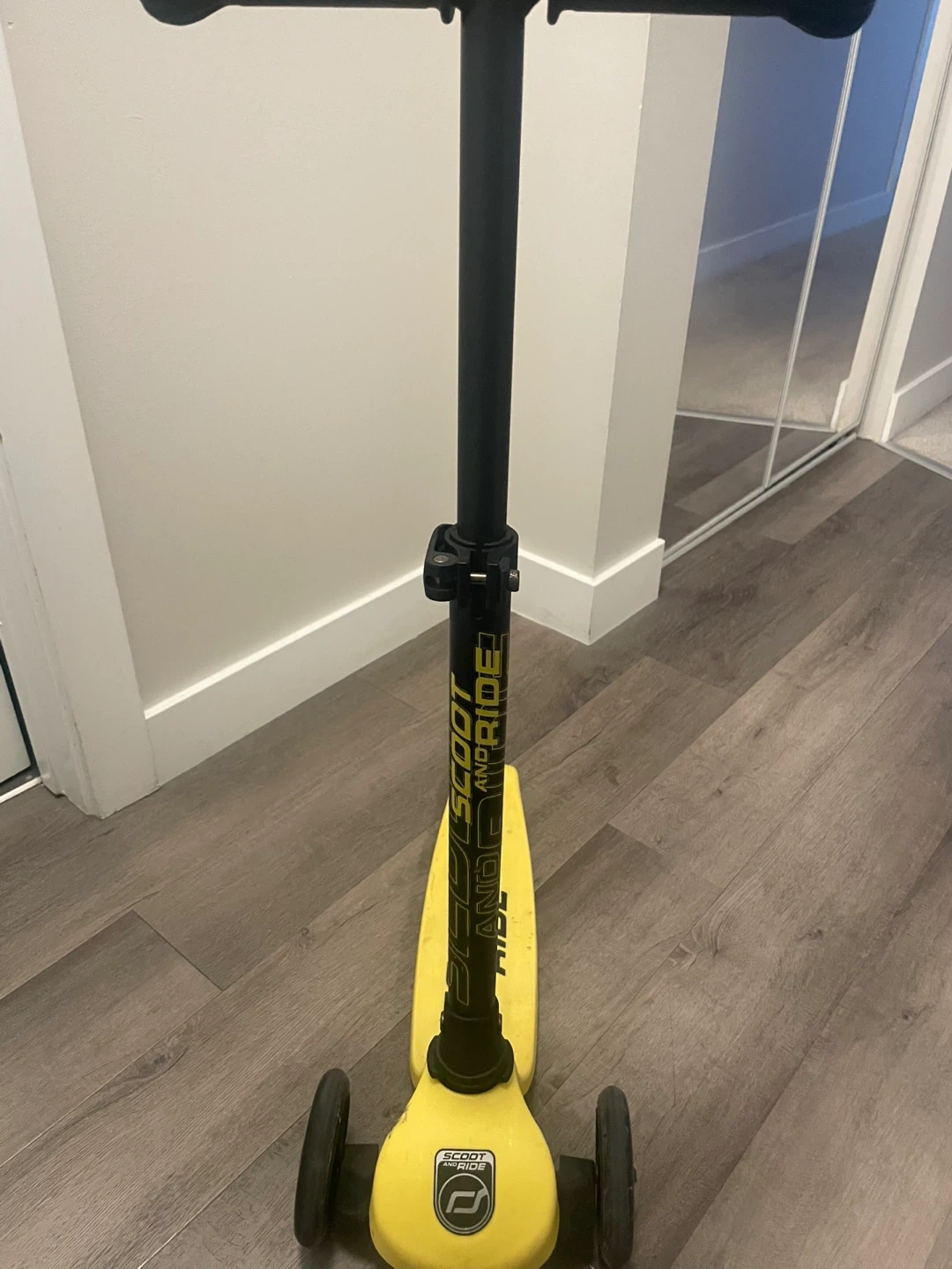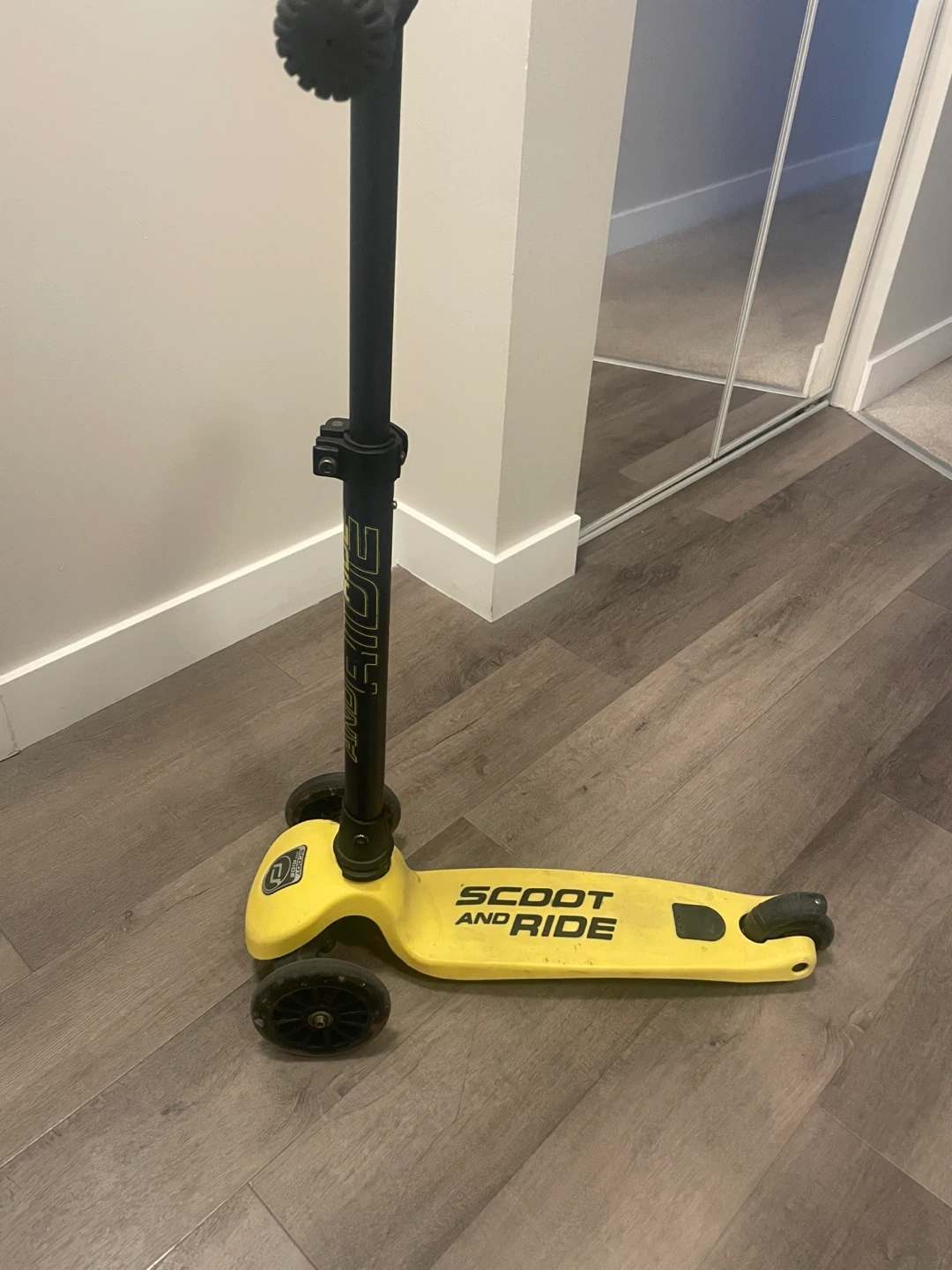 10Selling a yellow Scoot and Ride Highwaykick 1 scooter. It's in great shape and ready for a new home! Perfect for little ones learning to scoot around. The wheels are lighting during movement.