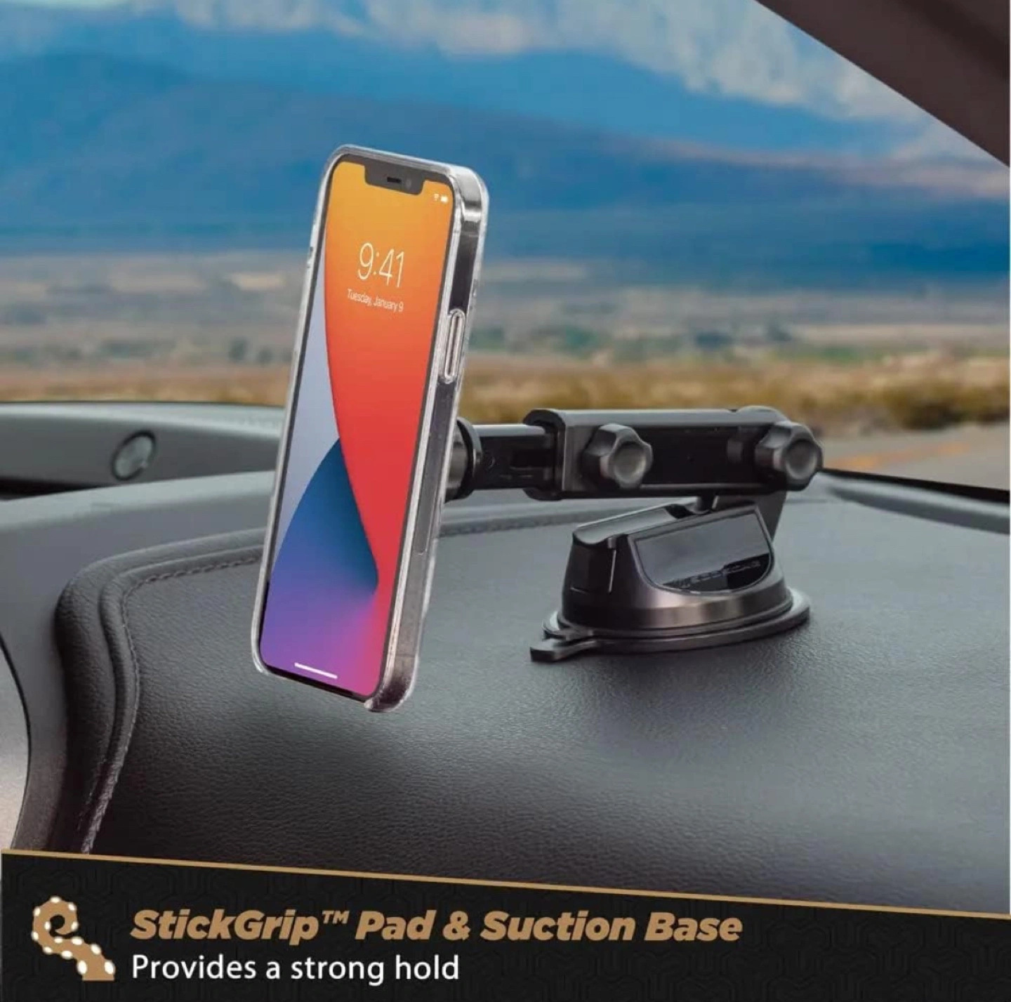 • INCLUDED IN PACKAGE: One Pro Extendo Mount with Suction Cup, one StickGrip Adhesive Disc, one Protective Film Sticker, one Alcohol Cleaning Wipe, and a User Manual.