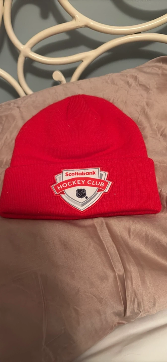 25Selling a red Scotiabank Hockey Club NHL beanie. It's in great condition and perfect for showing your support for your favourite team