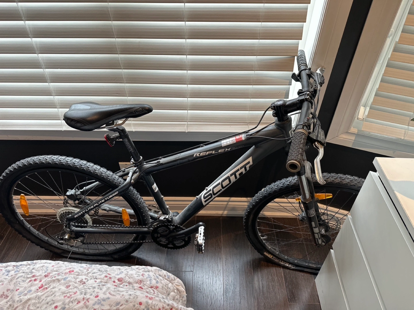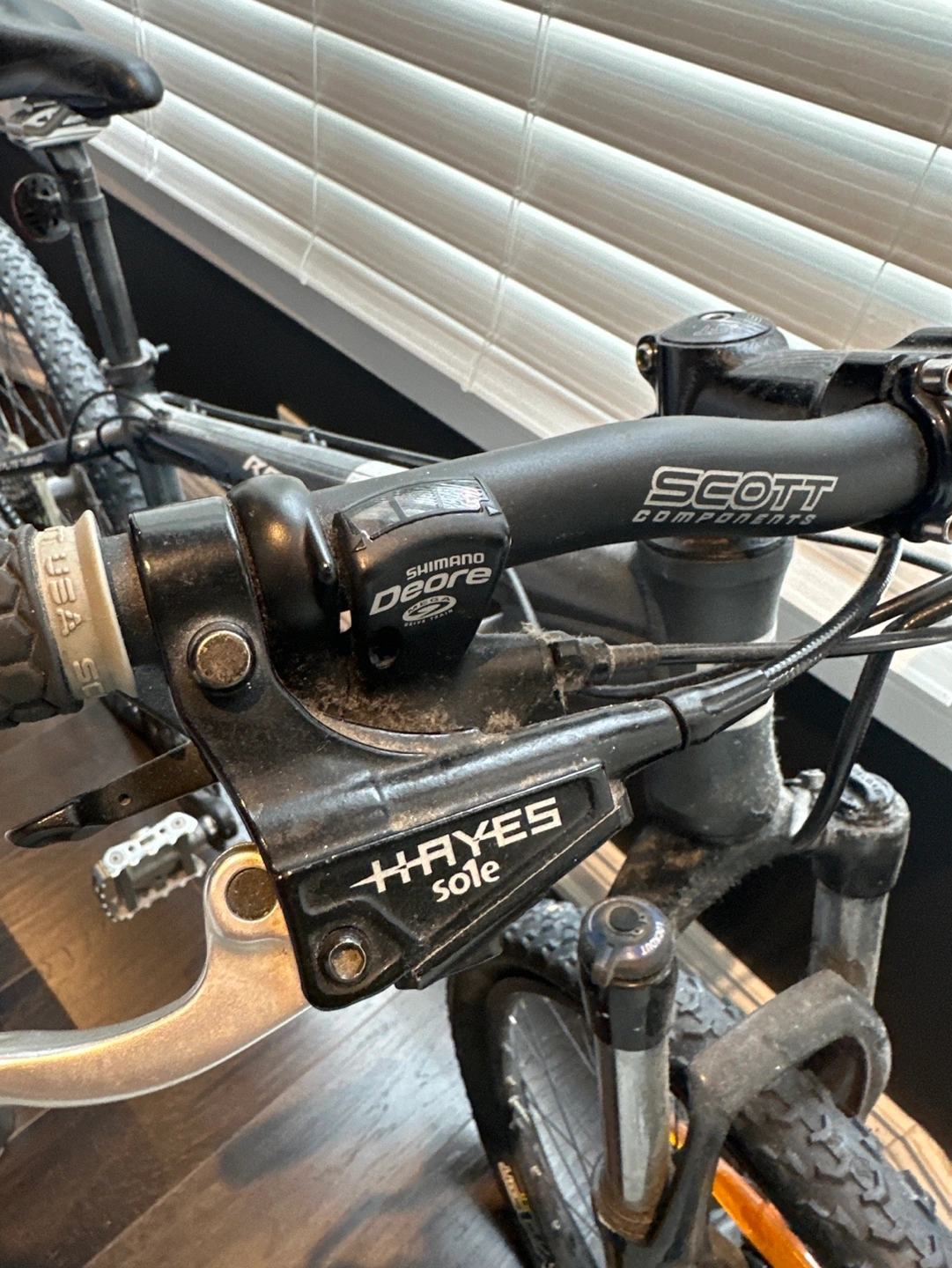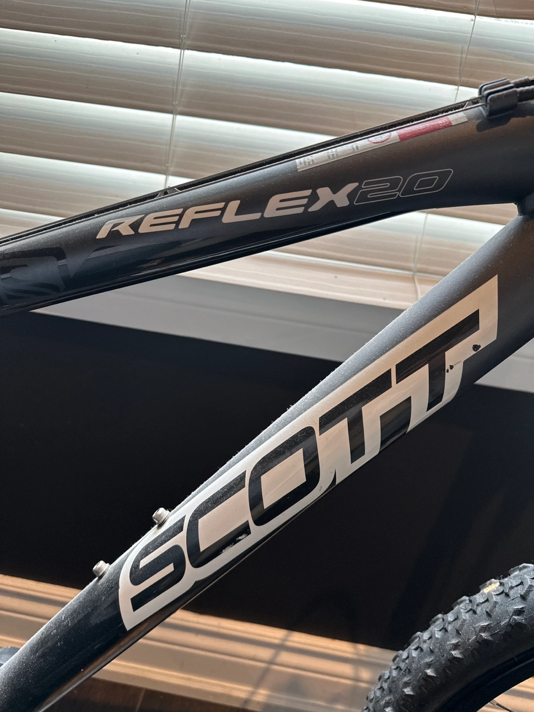 58Used Scott Reflex 20 mountain bike. Shimano Deore LX components. Hayes Sole brakes. Shows wear from use. Just need to put air. My brother's bike has not been used for a long time.