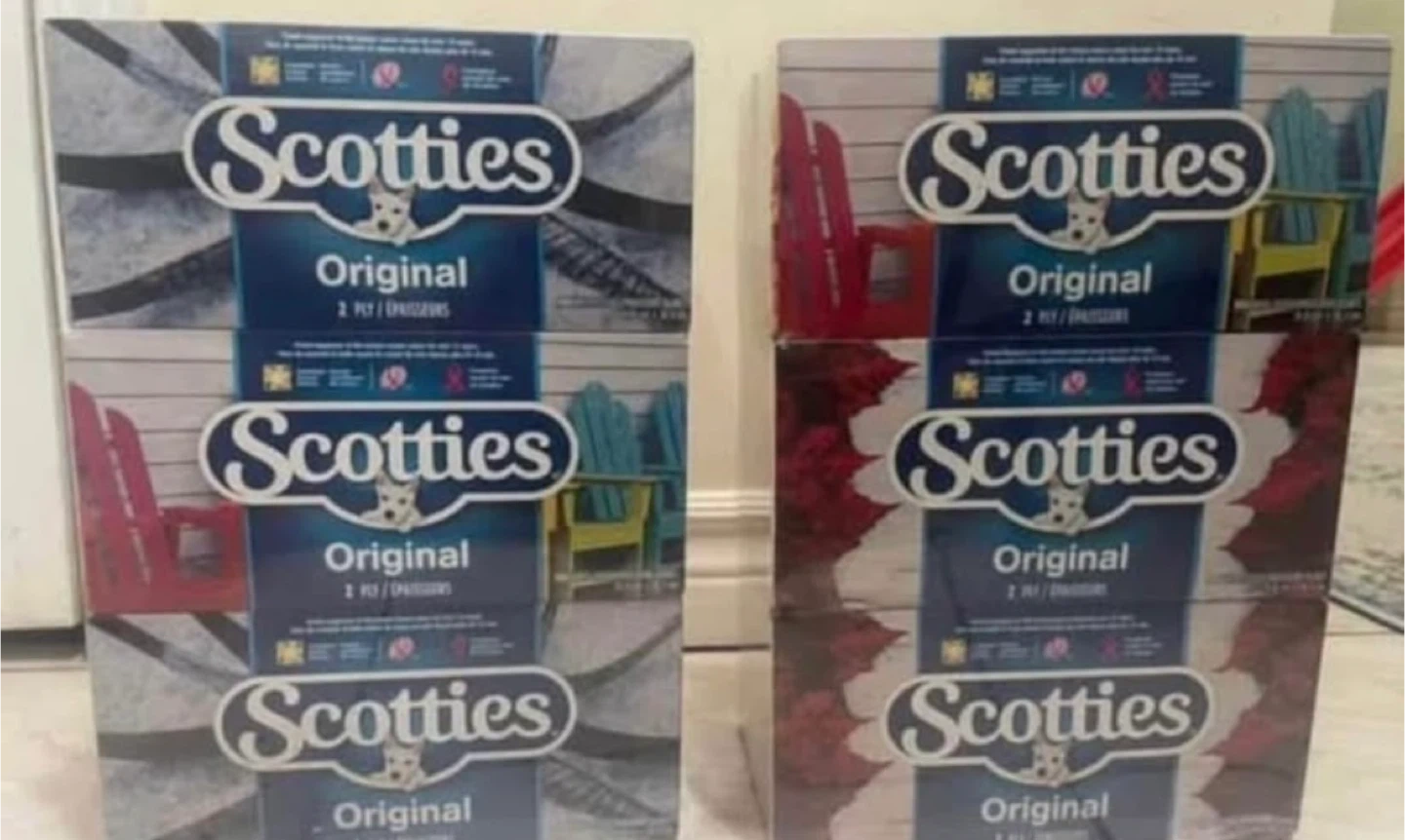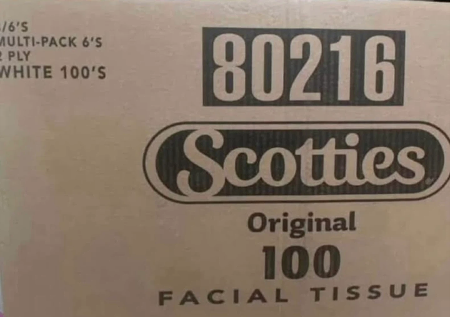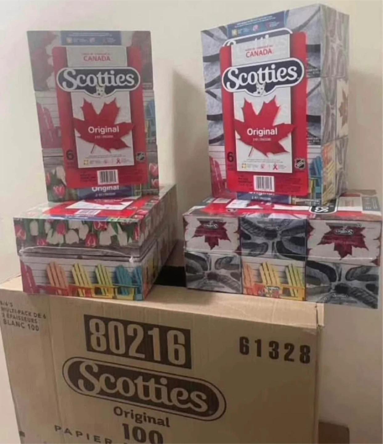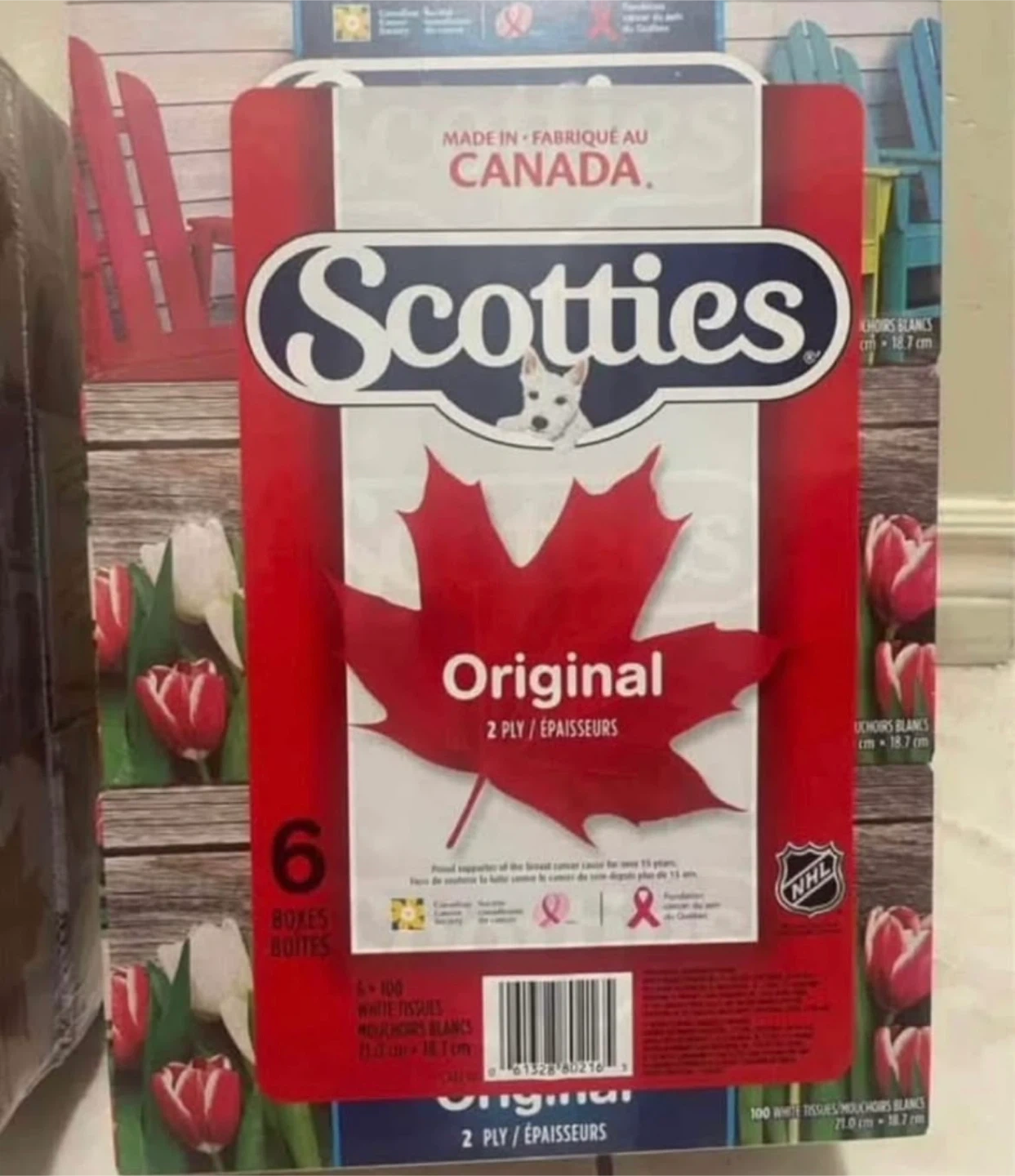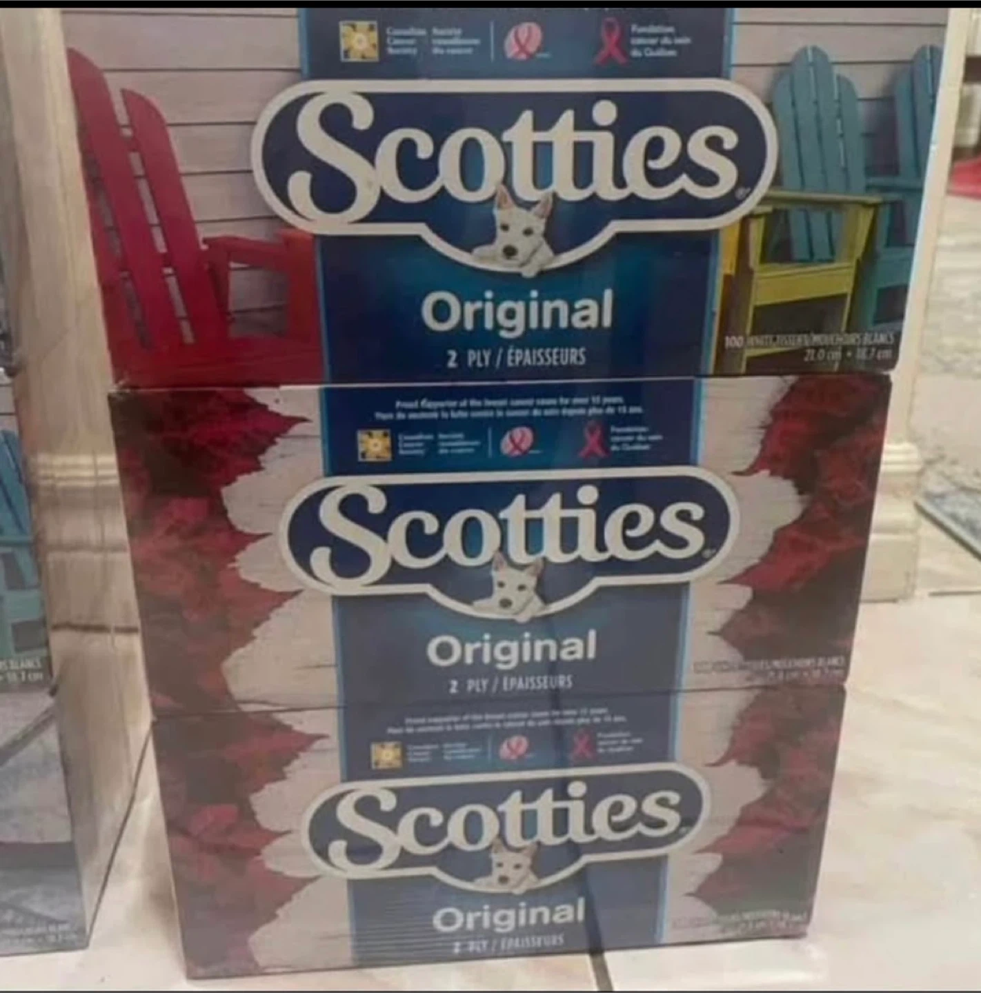 Selling 6 boxes of Scotties Original facial tissues. Each box contains 100 tissues. Great for stocking up! Each 6X1 for 12$ All 6x8 for 80$ Pickup-only Cash only