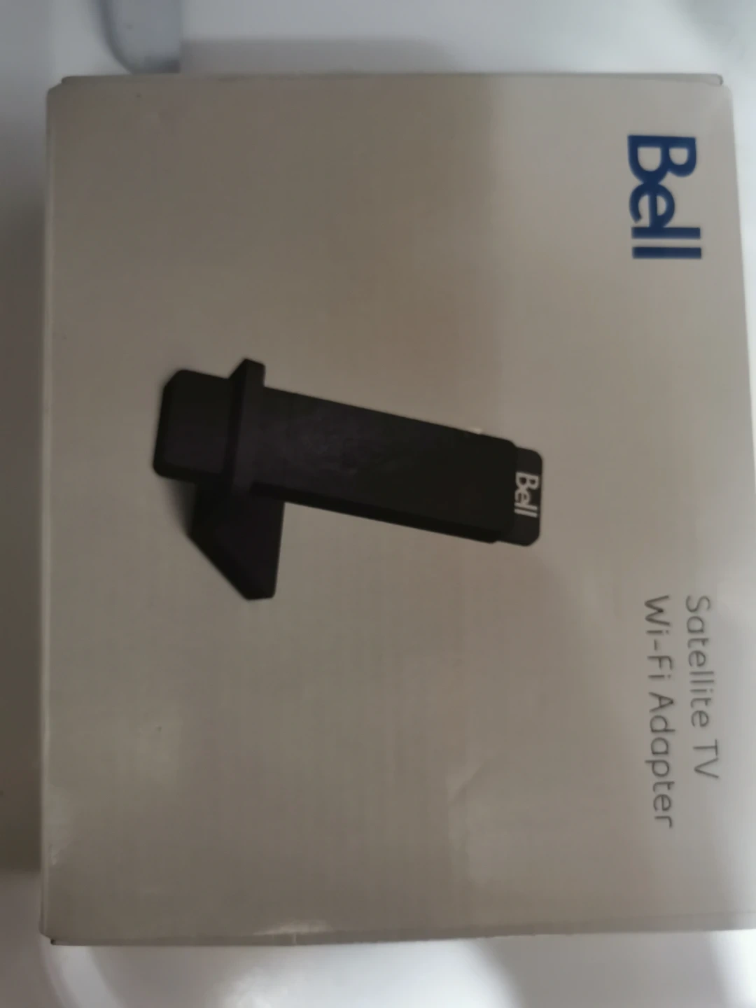 Bell Satellite TV Wi-Fi Adapter. Includes the adapter, USB cable, and stand. All components are in the original box.