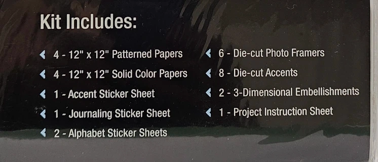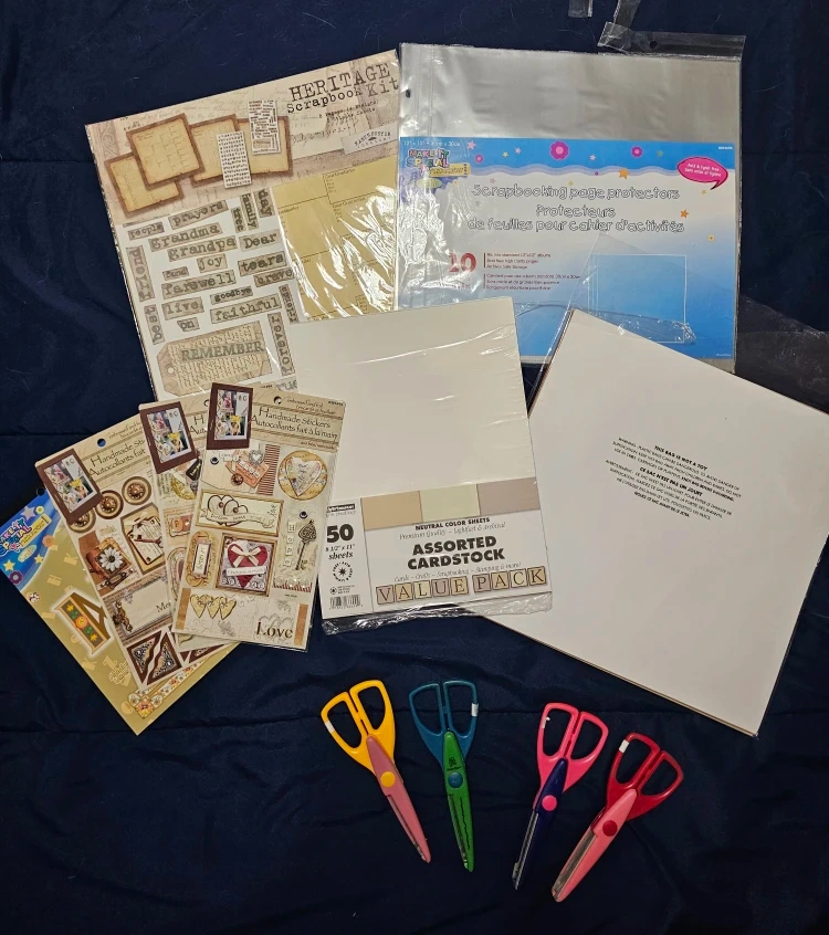 10I'm selling a scrapbooking kit bundle! It includes a variety of items to help you create beautiful and personalized scrapbooks. Included: - Solid and patterned sheets - Die-cut accents and photo framers - Various sticker sheets - Includes a 40 page 12x12 scrapbook - Scissors