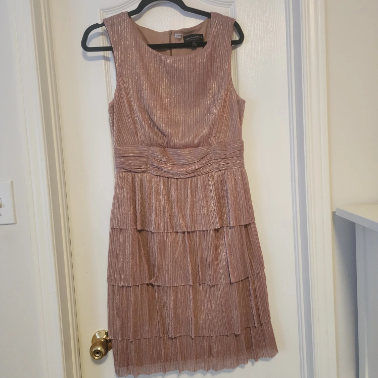 Beautiful rose gold dress. Size 12. Tiered skirt. Sleeveless. Great for parties or special occasions.