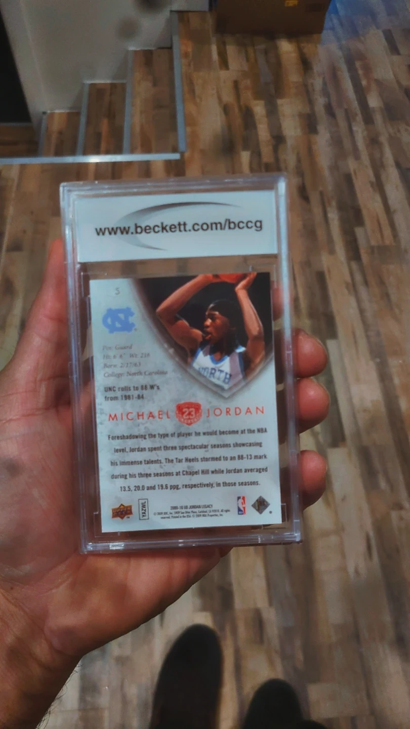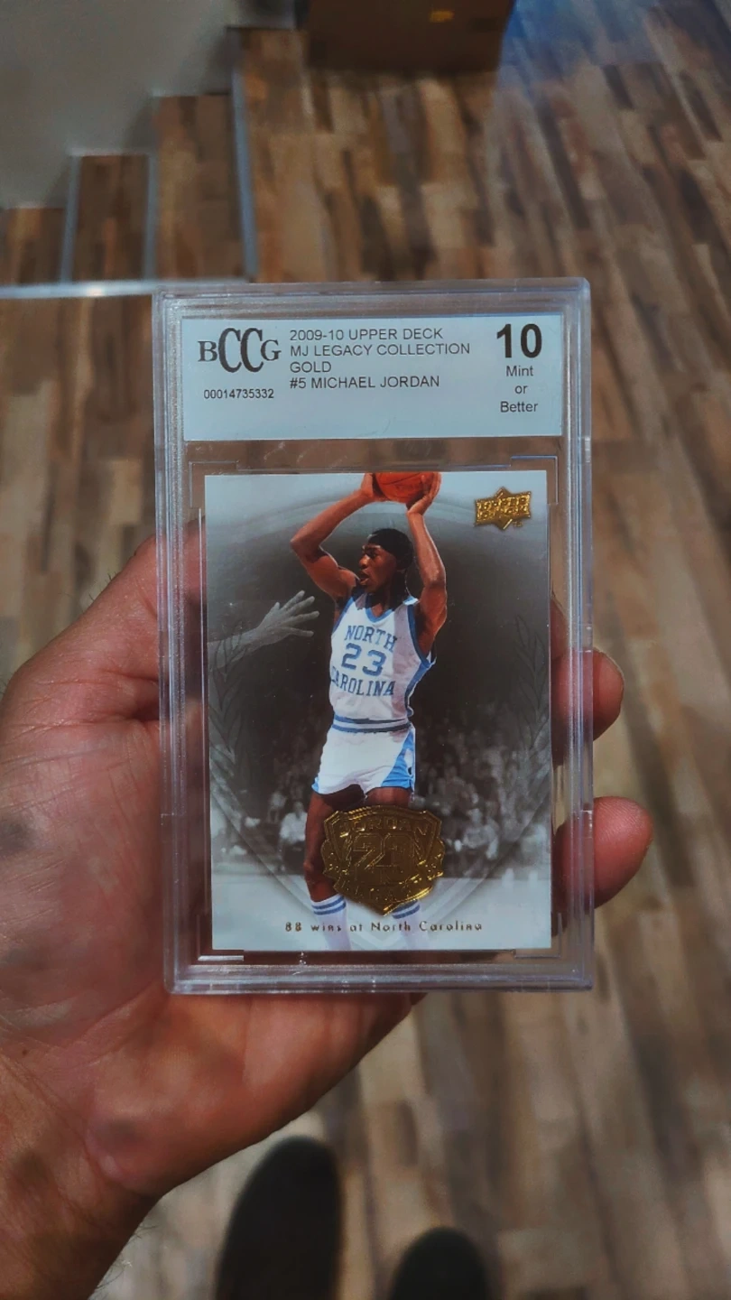 Buy & SellMichael Jordan Upper Deck Legacy Collection Gold CardMichael Jordan Upper Deck Legacy Collection Gold Card$24Selling a 2009-10 Upper Deck Legacy Collection Gold #5 Michael Jordan card. It's graded a 10 (Mint or Better) by BCCG.ConditionNewWHERE TO MEETCheck LocationView MapSELLERverifiedJoshitoMarquette Park650 reviews0 chats·1 favorites·24 viewsSEND CHAT TO SELLERHi Joshito! I’m interested in your listing.Hi Joshito! I’m interested in your listing.Get the Karrot app to chatSign In to chat