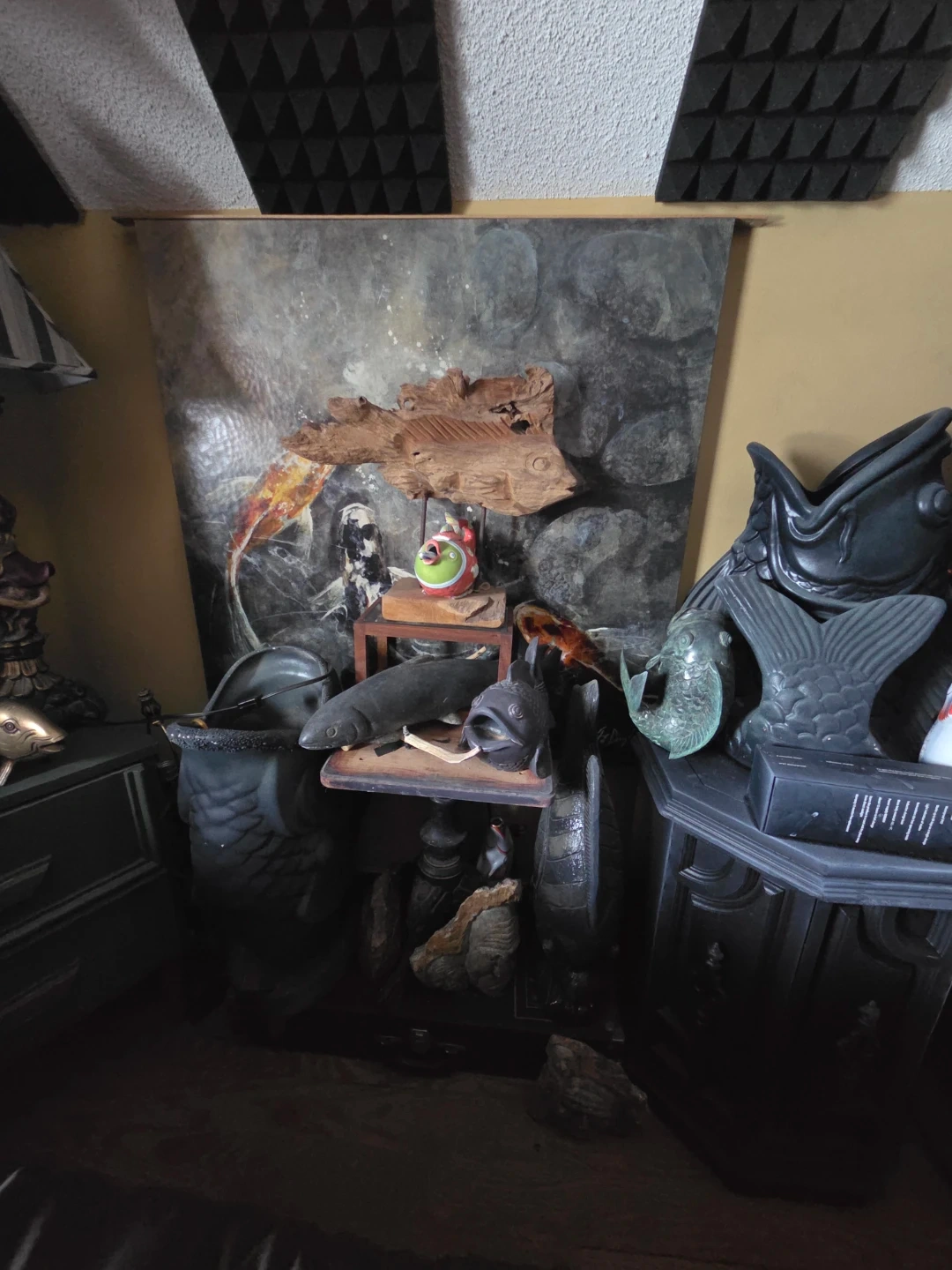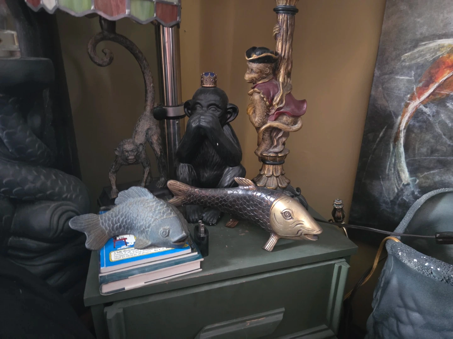 A collection of unique fish-themed decorative pieces. Includes various styles and materials, adding character to any space. These items are perfect for adding a touch of whimsy to your home decor.