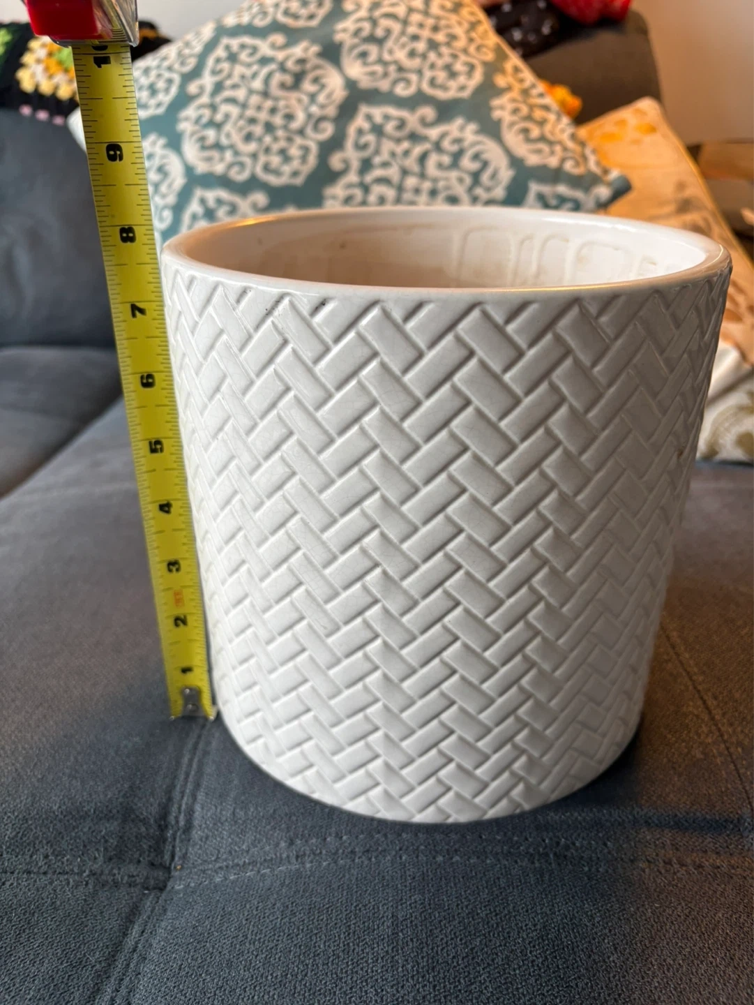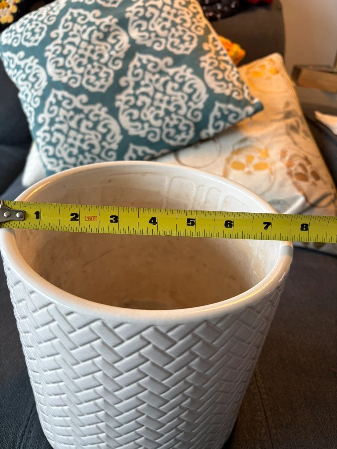 Great condition large white plant pot. Has drainage and still has plastic stopper in the hole in case you don’t want drainage. Some discolouration inside from soil. 7.5” diameter and 7.5” high. Pickup near Sherbourne and Adelaide or sometimes at King station.