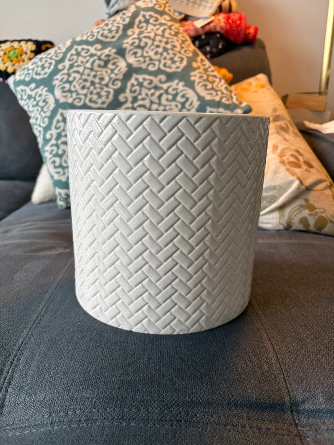 Great condition large white plant pot. Has drainage and still has plastic stopper in the hole in case you don’t want drainage. Some discolouration inside from soil. 7.5” diameter and 7.5” high. Pickup near Sherbourne and Adelaide or sometimes at King station.