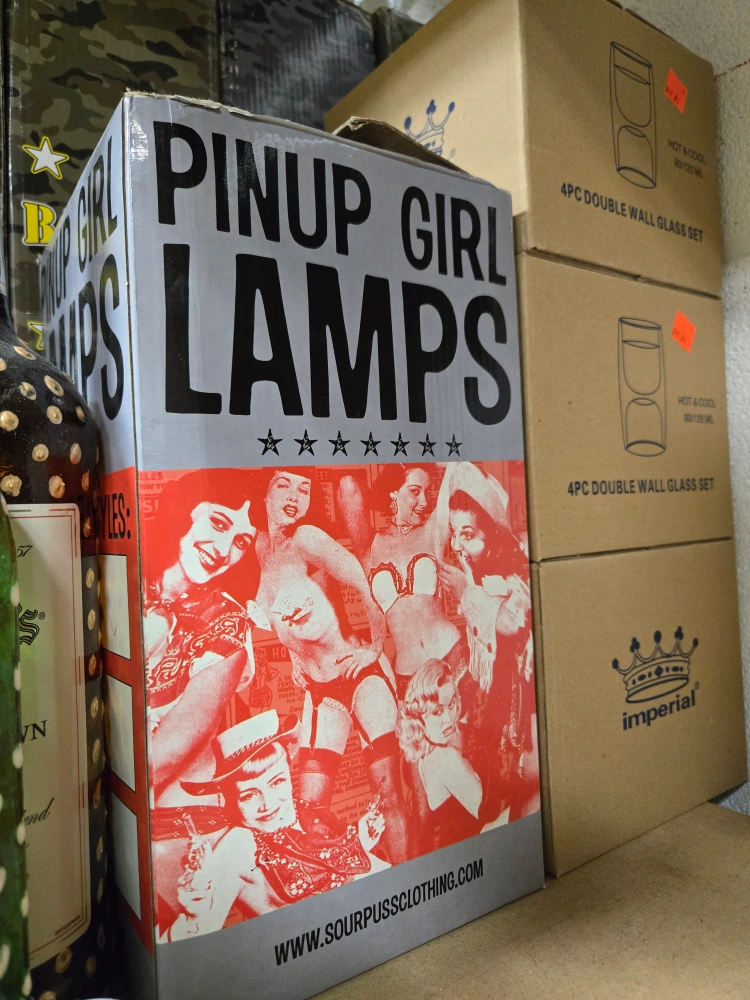 Add a touch of retro flair to your space with these unique Pinup Girl Lamps from Sourpuss Clothing! The lamp showcases classic pinup designs and comes in its original box. Perfect for adding a vintage vibe to any room