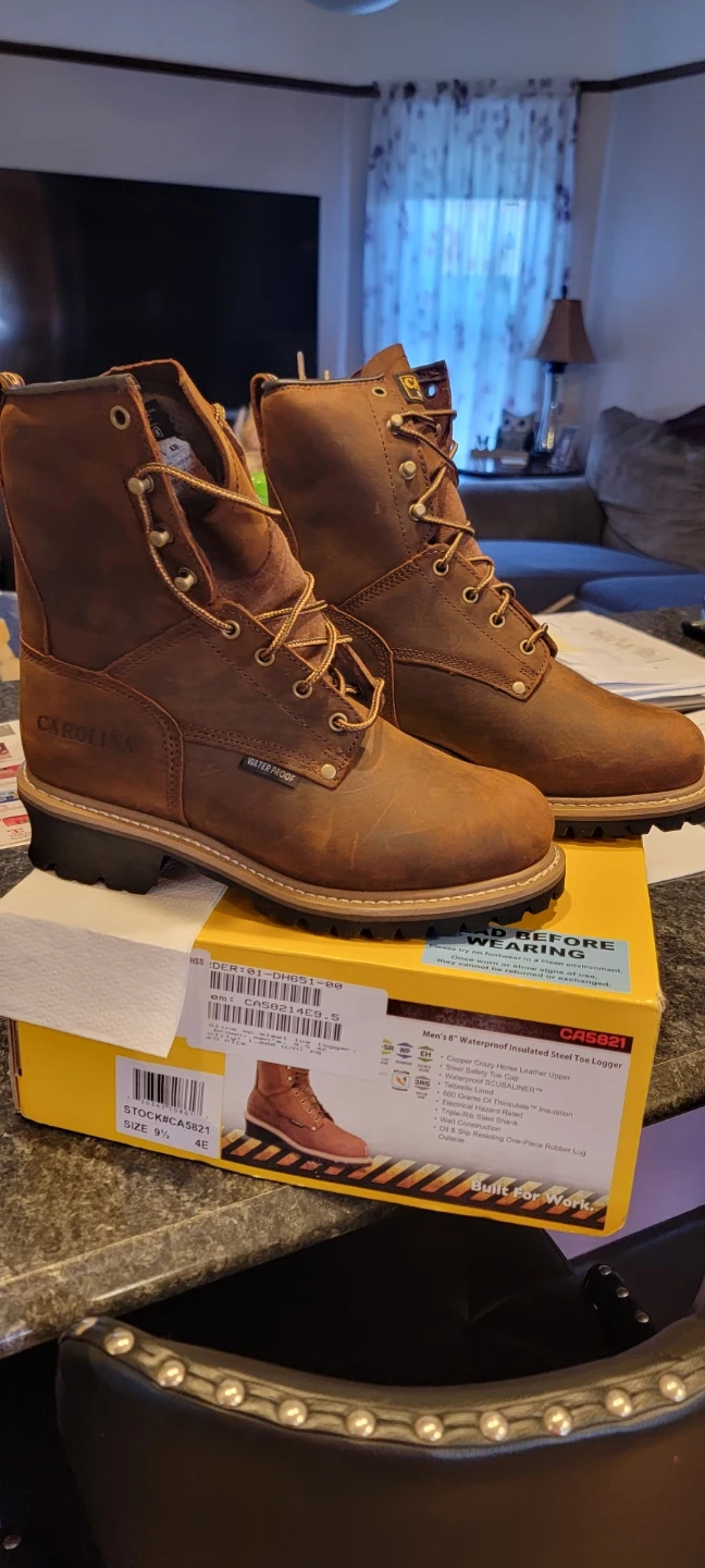 Brand new size 9 1/2 in box never worn! Carolina men's logger boots. These are waterproof and insulated with a steel toe. Oil-resistant rubber lug sole for great traction. Built for work!