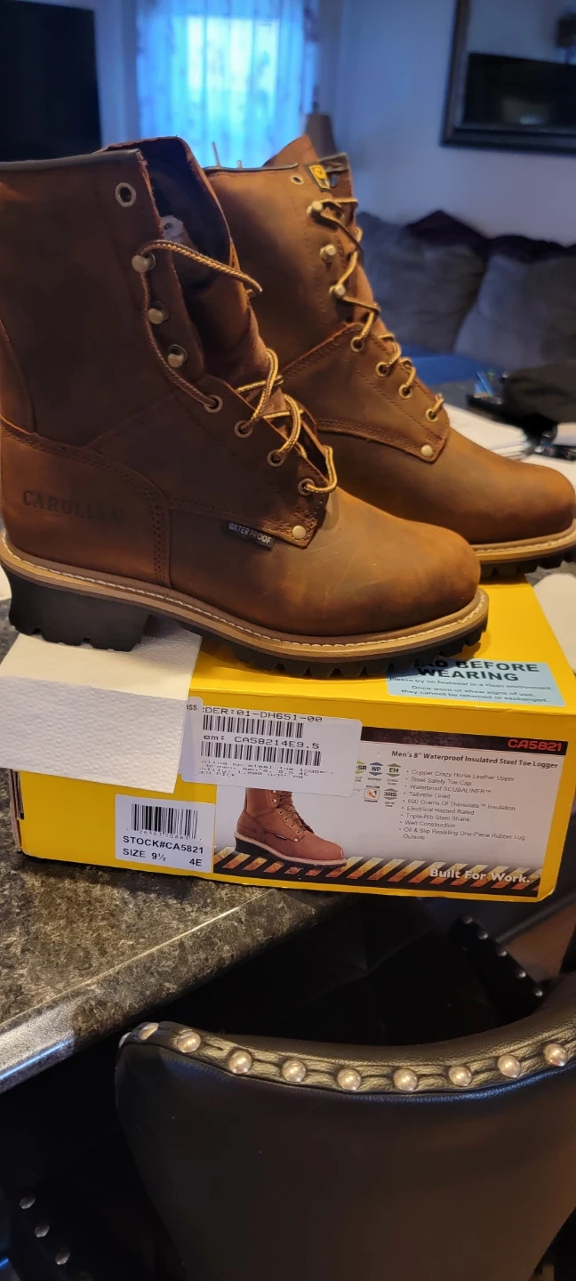 Brand new size 9 1/2 in box never worn! Carolina men's logger boots. These are waterproof and insulated with a steel toe. Oil-resistant rubber lug sole for great traction. Built for work!