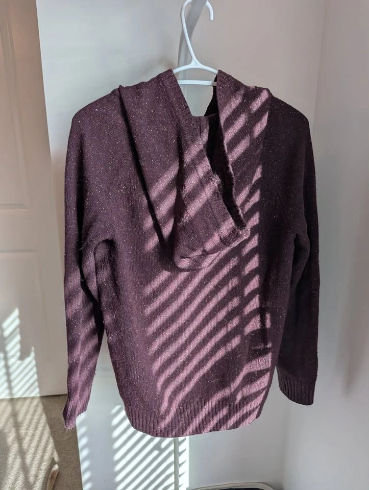 Size small Patagonia wool sweater. Pullover with hood and buttons, like a quarter zip. In good condition! I just don't reach for it much. Colour is purple with little speckles. Very cute! Asking $40 pickup near Langley Costco.