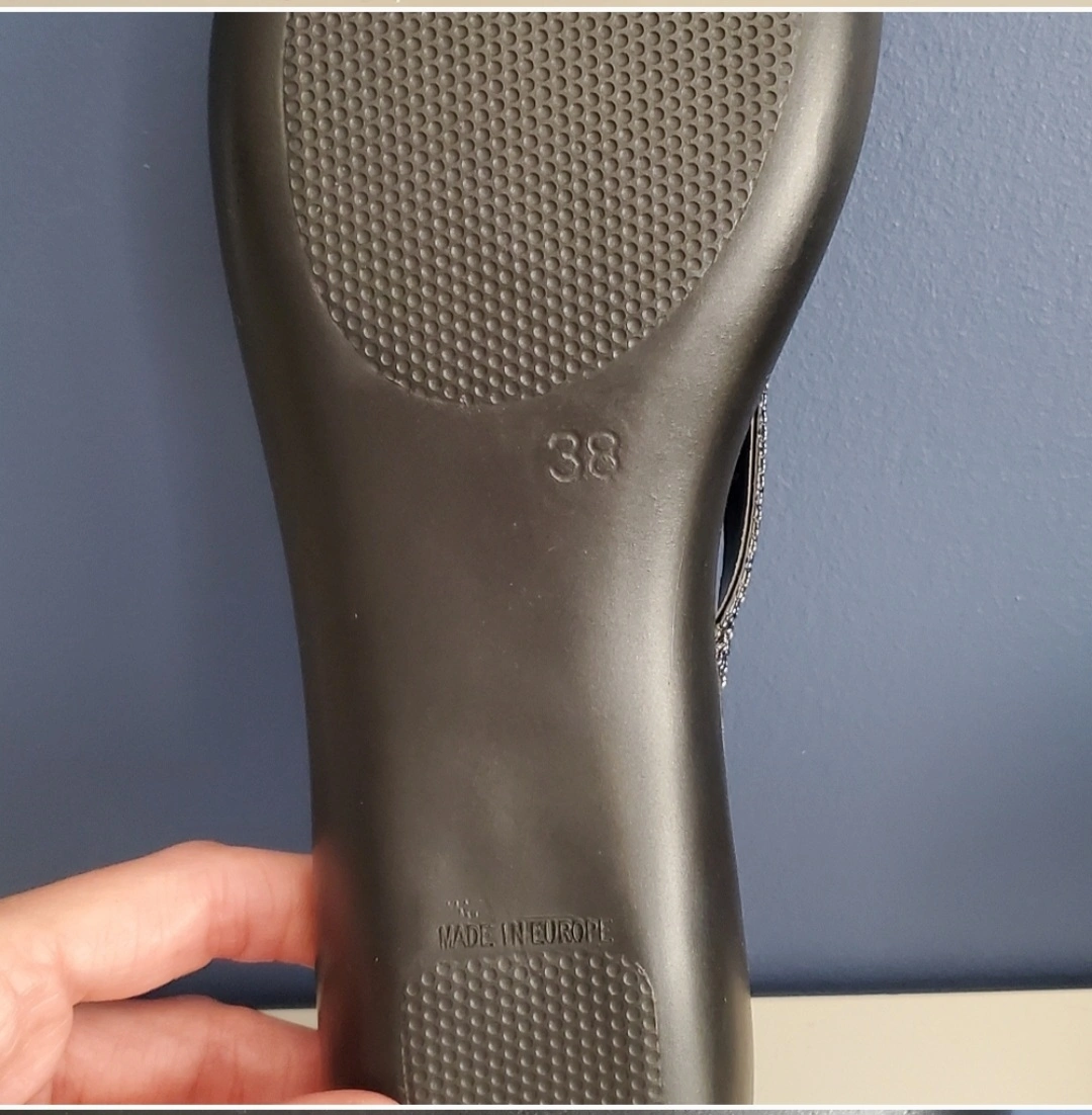 Pair of black flip flops. Glitter detailing. Size 38. Made in Europe.