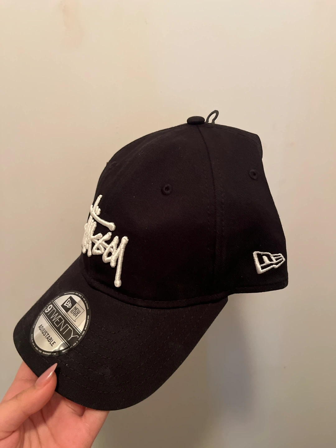 This is a Stussy Basic 9TWENTY cap in black. It features an adjustable strap for a comfortable fit. The embroidered Stussy logo is prominent on the front. BOUGHT FOR 60+. Never worn and the tag is still on. Literally bought not too long ago but I got a new colour.