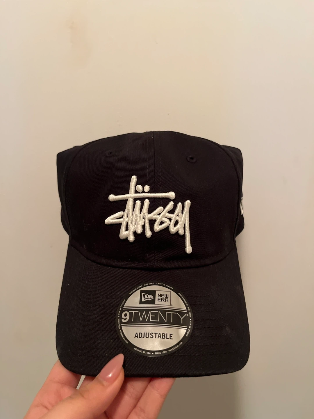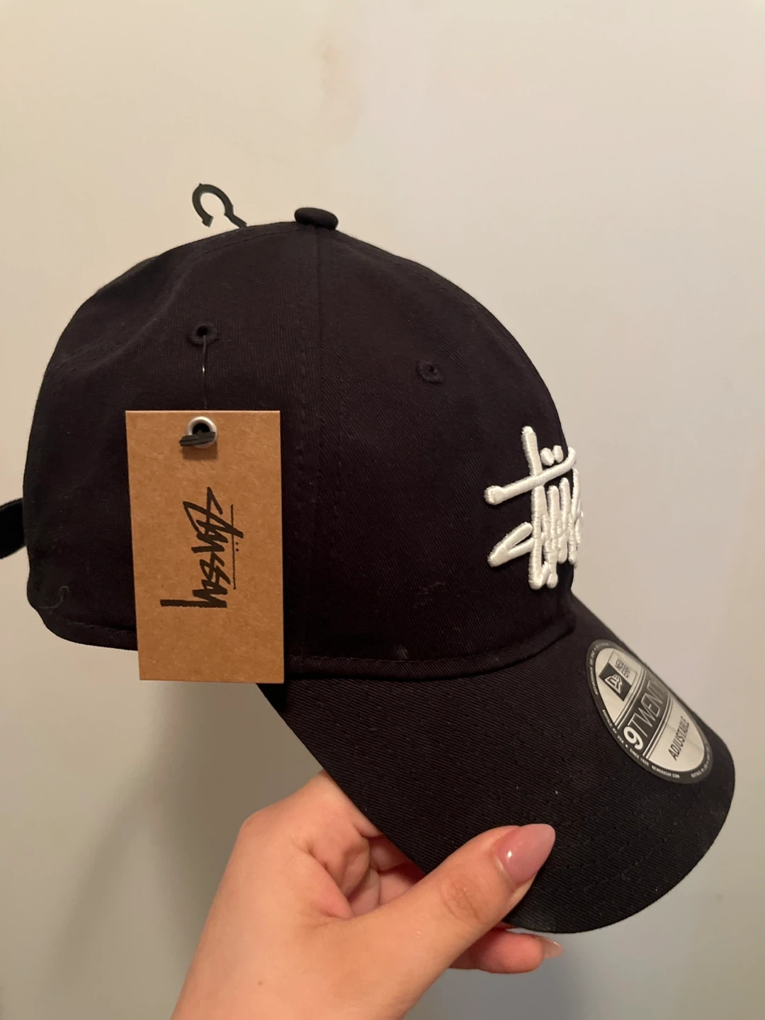 This is a Stussy Basic 9TWENTY cap in black. It features an adjustable strap for a comfortable fit. The embroidered Stussy logo is prominent on the front. BOUGHT FOR 60+. Never worn and the tag is still on. Literally bought not too long ago but I got a new colour.