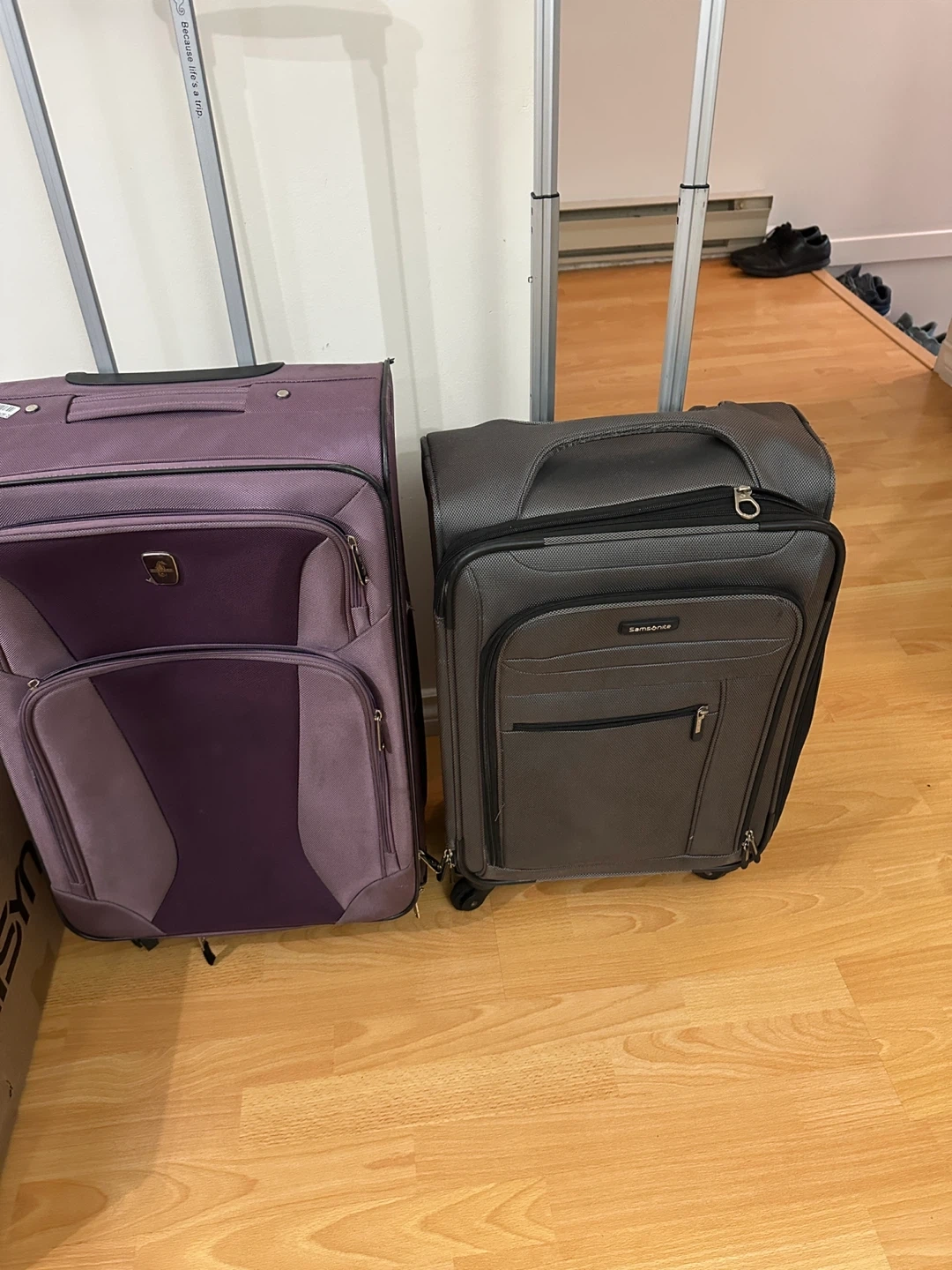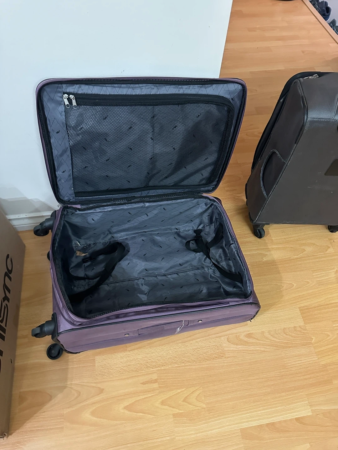 Rolling suitcases. They have spacious interiors with compression straps and a zippered mesh pocket. Telescopic handle and wheels for easy transport. Come with an exterior zippered pocket. $30 for each and $50 for both.