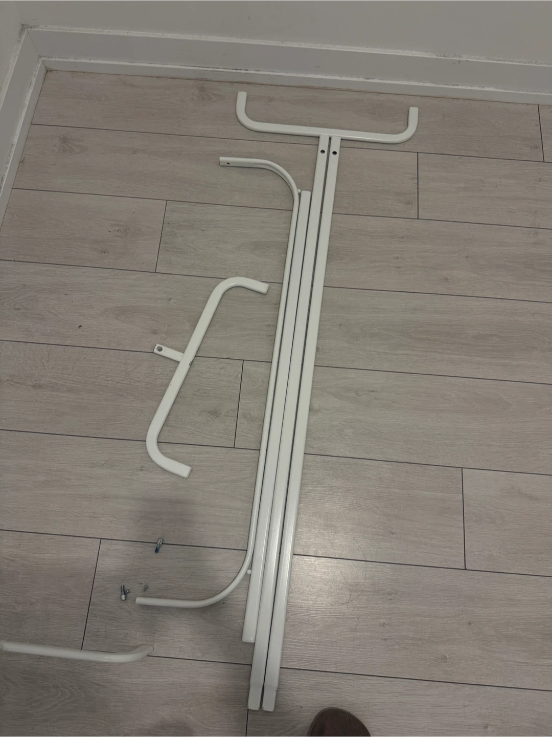 Selling an Ikea Mulig clothes rack in white! It's in great condition and easy to assemble. Measures 99x152 cm (39x59 7/8 ")