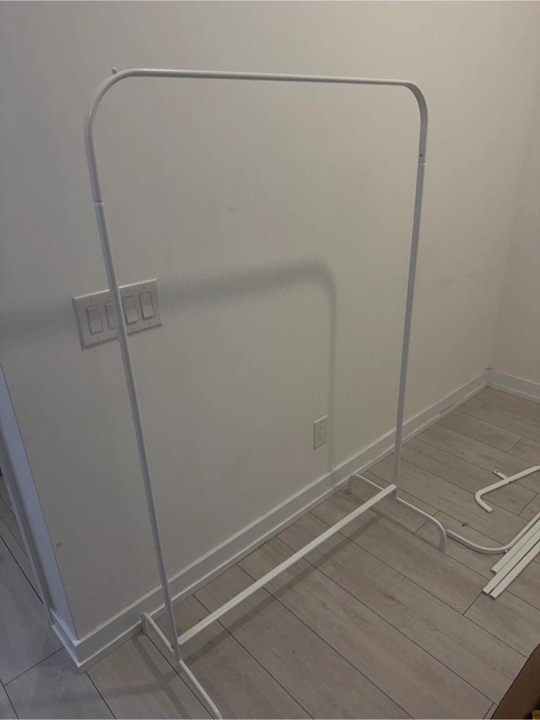 Selling an Ikea Mulig clothes rack in white! It's in great condition and easy to assemble. Measures 99x152 cm (39x59 7/8 ")