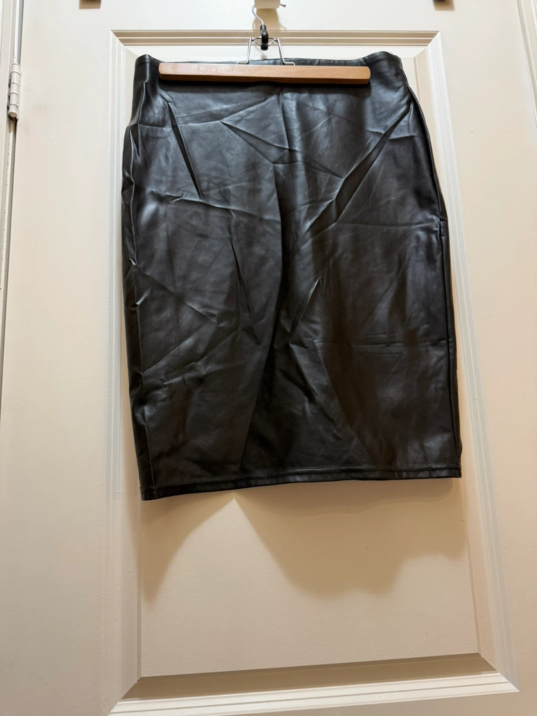 Selling a stylish black faux leather skirt from TEN by Babaton. It's a size large and in great condition as its never been worb. Perfect for adding a bit of edge to your wardrobe!