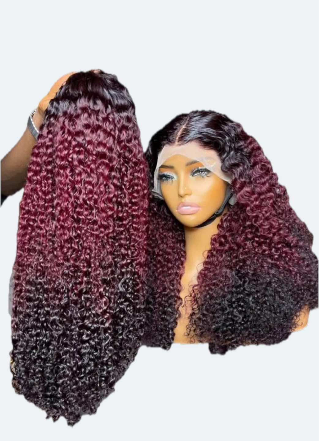 0Selling a curly wig with a beautiful burgundy to black ombre effect. It's in great condition and ready for a new home!