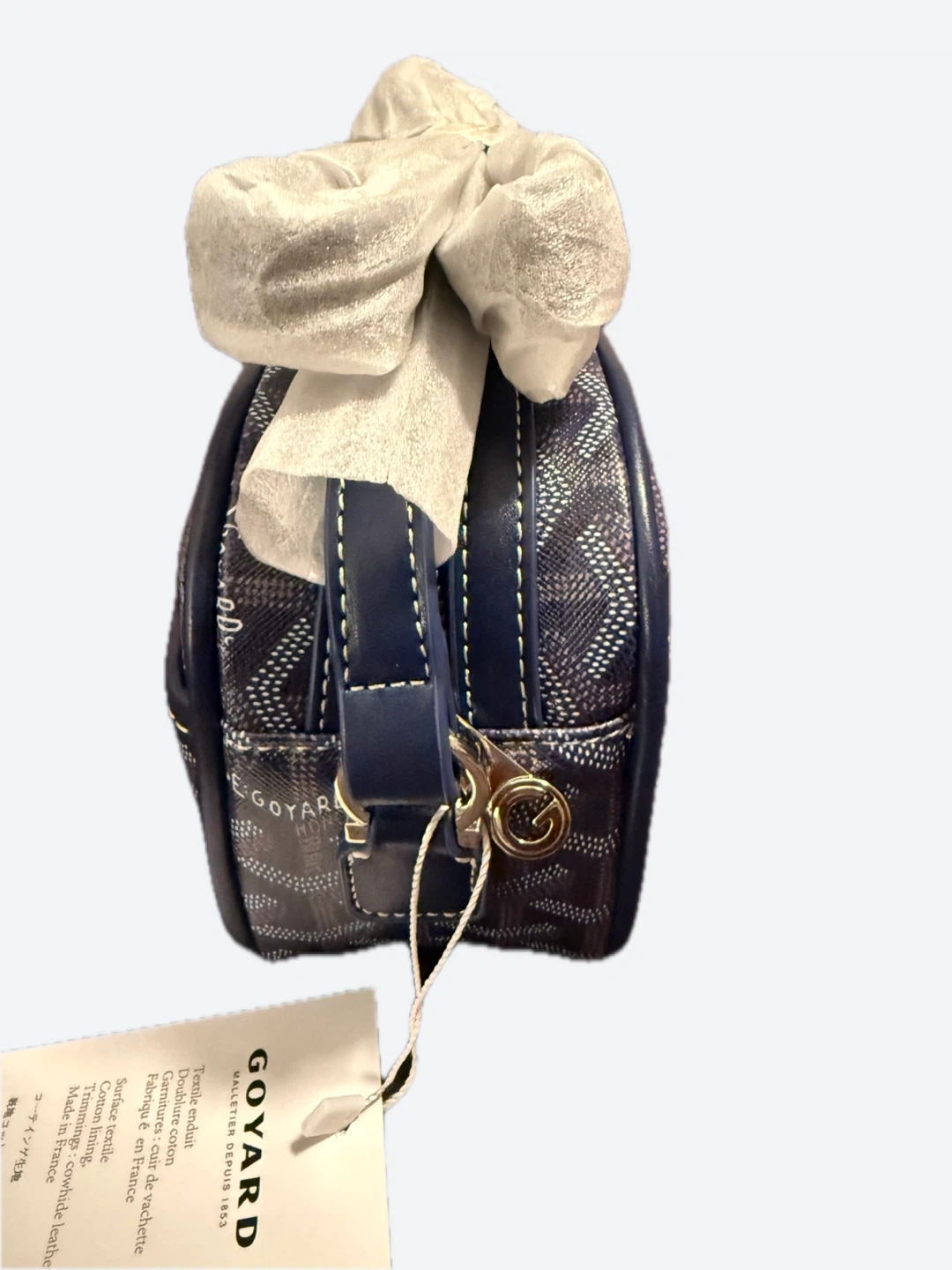 This is a Goyard crossbody bag with the iconic chevron pattern. It comes with a removable strap and dust bag. Made in France.