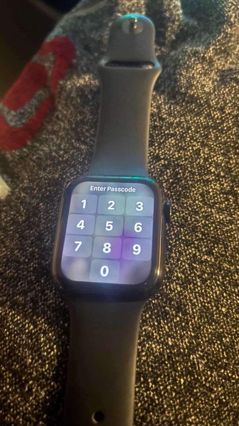 Apple Watch Series 6 GPS. Features a Retina display with ECG and blood oxygen monitoring. Includes charging cable.