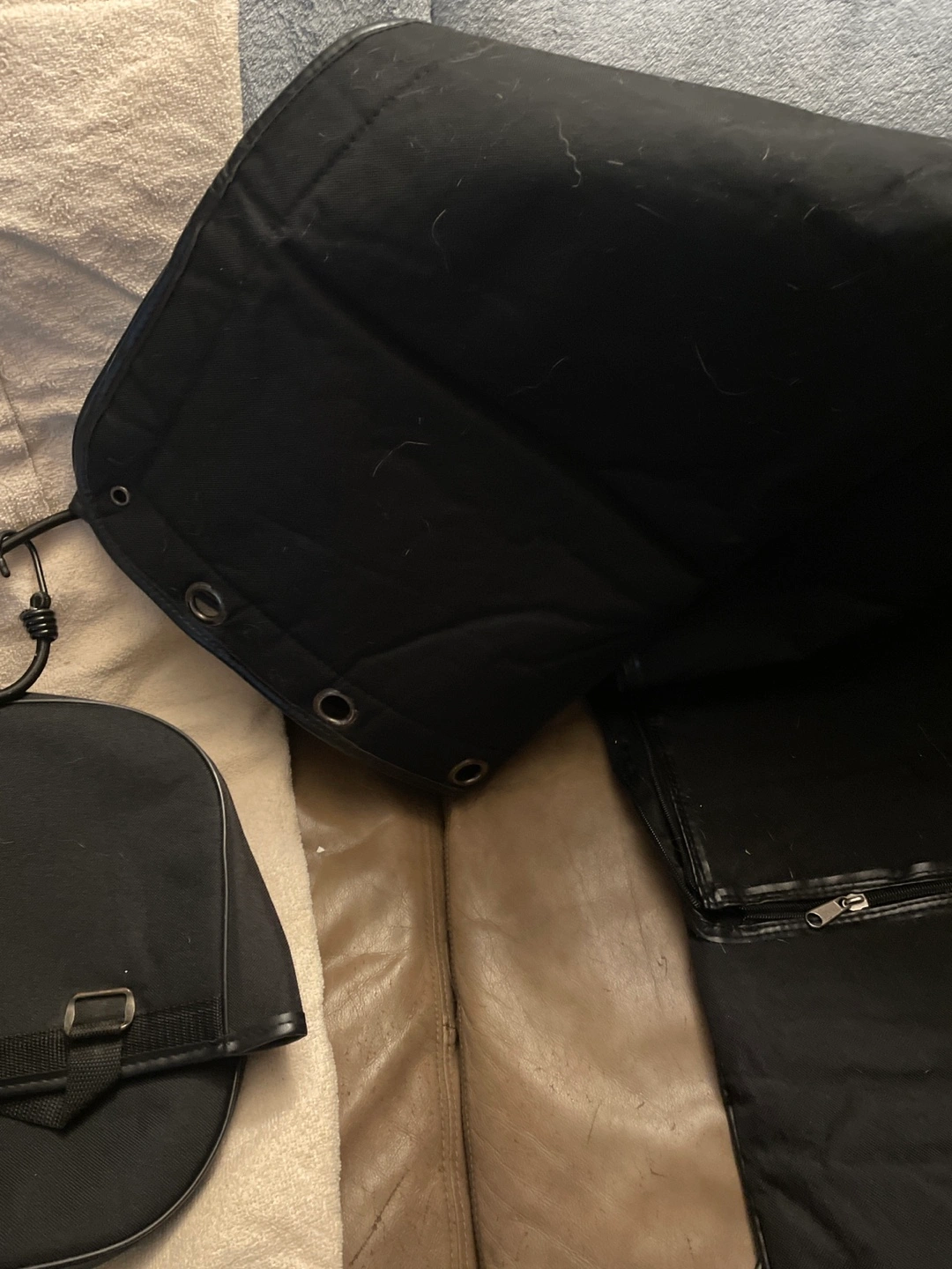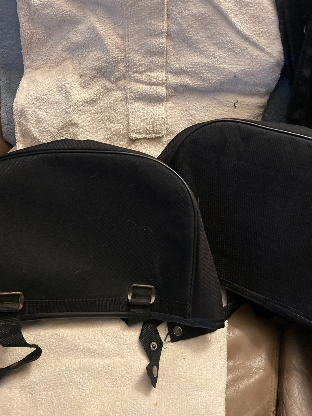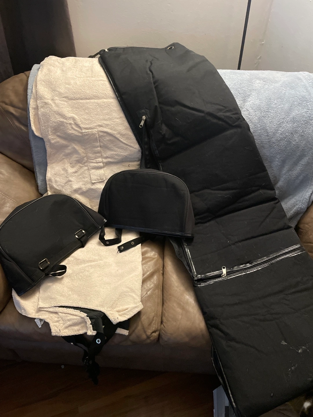 Back seat covers for vehicle- black one protects against hair and nail damage, white terrycloth is for after baths at the groomers or just a wet dog! Both for $35 dollars.