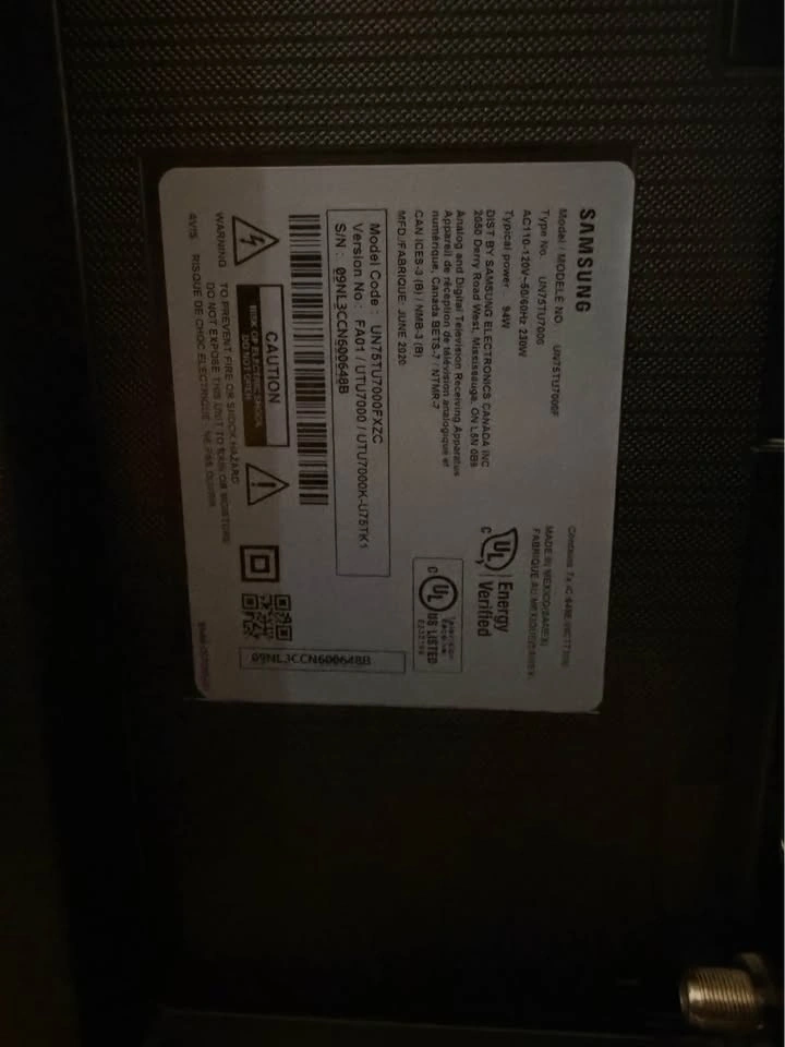 Selling a Samsung 75 inch 4K UHD Smart TV (Model: UN75TU7000FXZC). Massive 75” screen, 4K Ultra HD resolution, Smart TV with Netflix, YouTube, Prime, Disney+. HDR support and multiple HDMI ports (great for PS5 / Xbox). Clear picture & strong sound. Fully tested – works perfectly. Pickup in Richmond Hill.