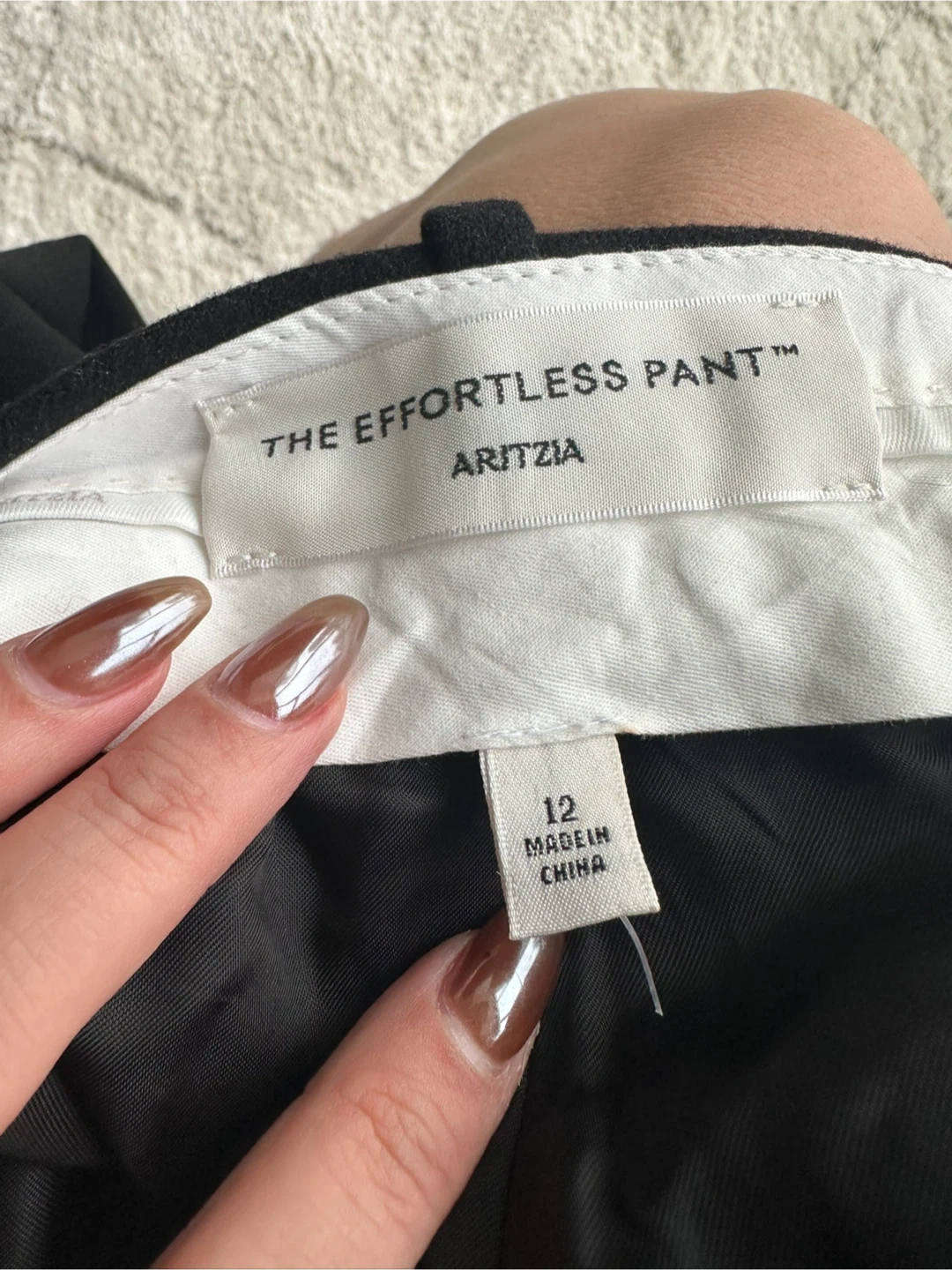 Selling a pair of Aritzia's The Effortless Pant in size 12! These are made with a blend of wool, polyamide, and cashmere for a comfortable fit.