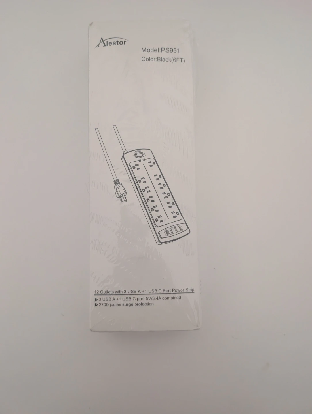 I'm selling a new Alestor PS951 power strip in black (6FT). It features 12 outlets with 3 USB A + 1 USB C port power strip and 2700 joules surge protection. The box is included!