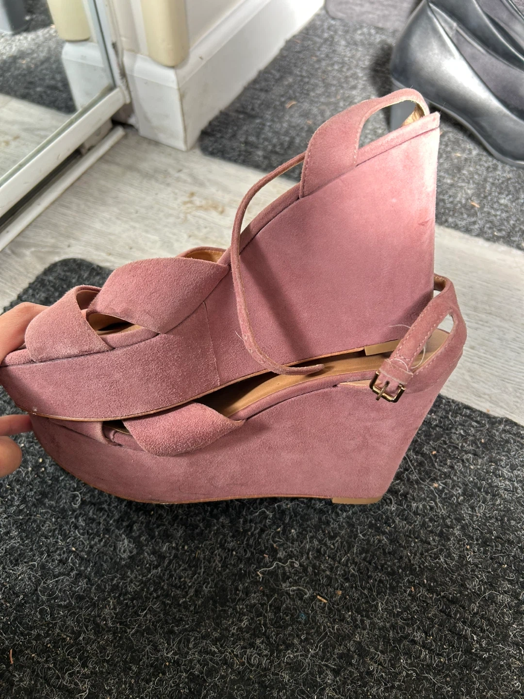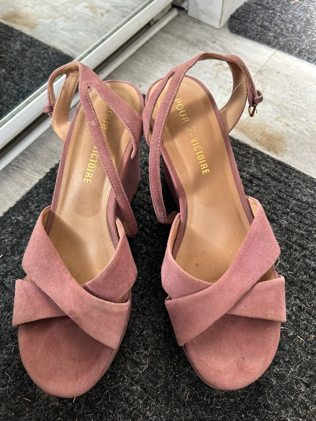 Pour La Victoire Pink Suede Wedge Sandals Size 8