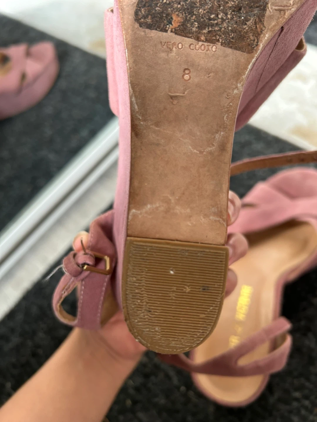 Pour La Victoire Pink Suede Wedge Sandals Size 8