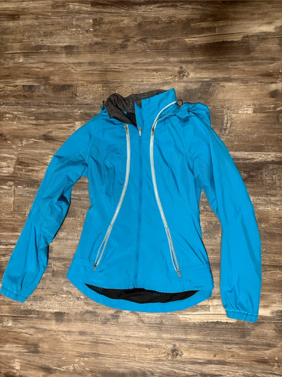 Lululemon bright blue athletic jacket. It features a hood and breathable mesh detailing at the hem. This jacket is lightweight and suitable for active pursuits. Tag fell off so unsure of exact size but pretty sure it’s a small.