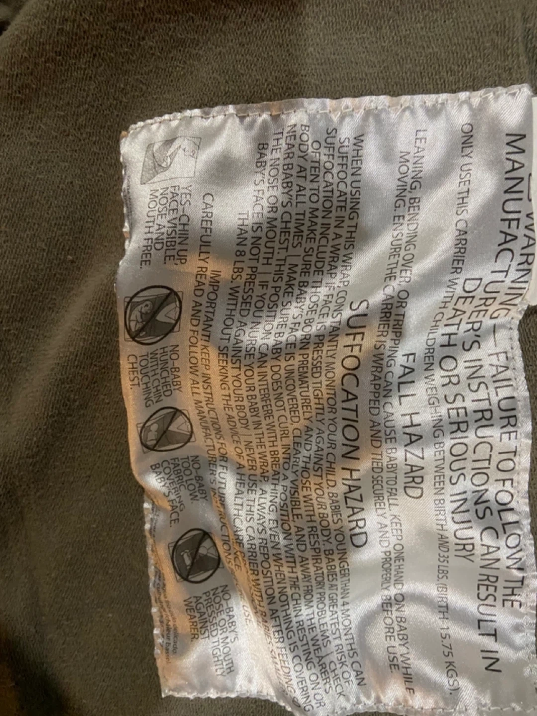 A khaki green baby carrier from Boba. This carrier is suitable for infants and children weighing between 7 and 35 lbs. It features a breathable fabric for comfort.
