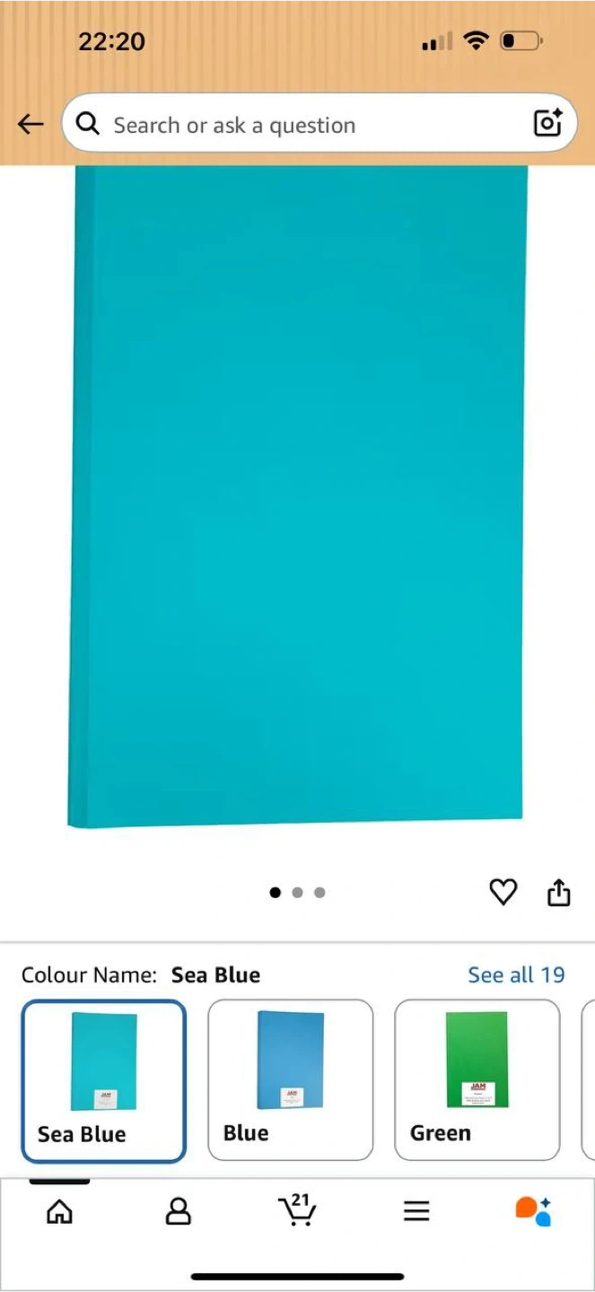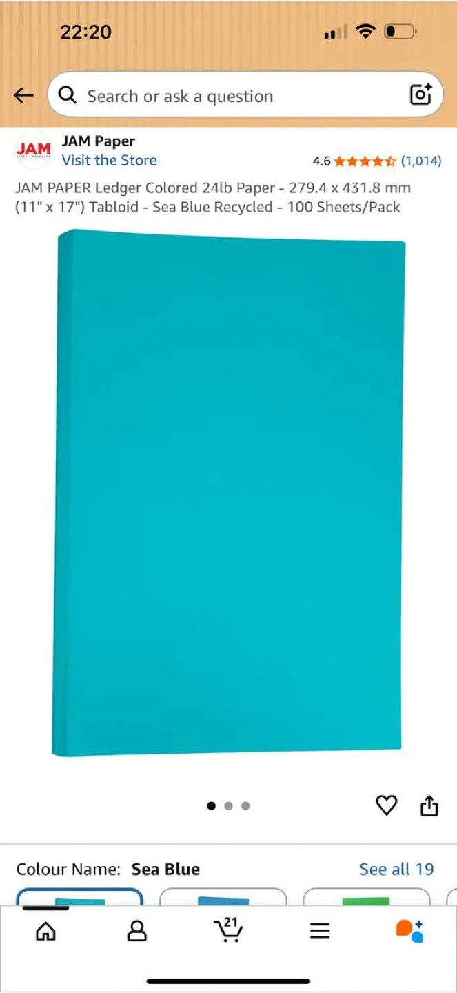 High-quality JAM Paper colored ledger paper in a beautiful Sea Blue color. Perfect for presentations, posters, crafts, printing, office use, and school projects.