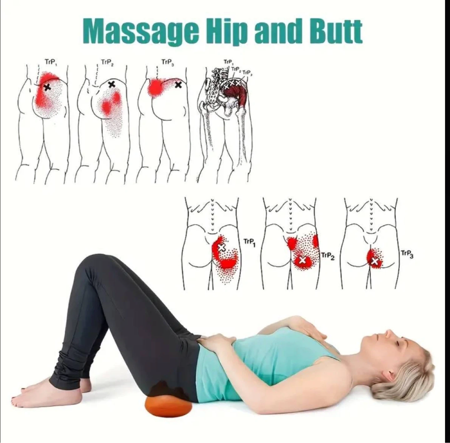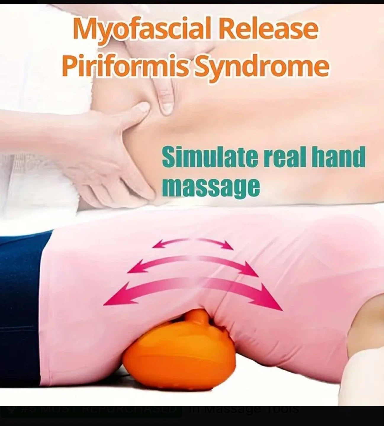 Portable massage tool. Relieves pain in the back, shoulders, waist, and psoas muscle. Simulates real hand massage. Easy to use. Great for piriformis syndrome.