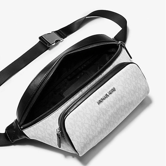Selling a stylish Michael Kors belt bag with the signature white print. It's perfect for keeping your essentials close and adds a touch of elegance to any outfit. The bag features a main compartment and a front zip pocket for easy access to your belongings. Great for everyday use or travel!