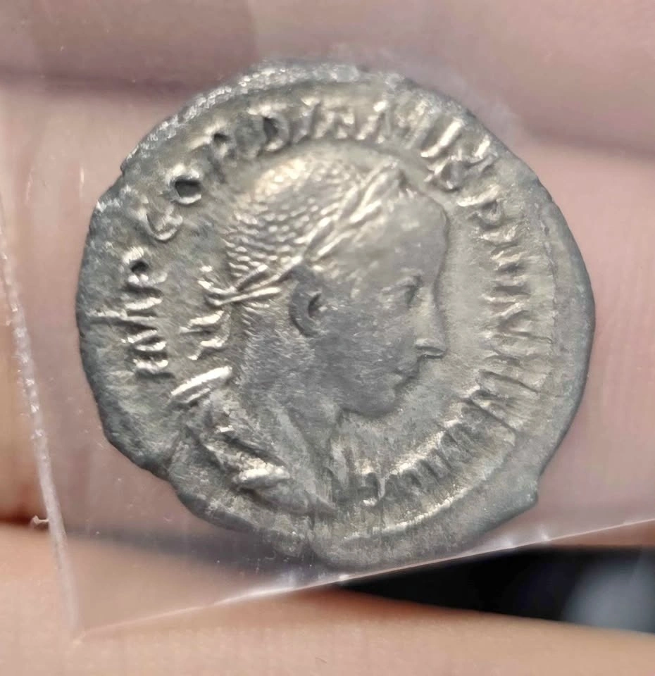 Authentic Roman Empire AR Denarius featuring Emperor Gordian III. The coin depicts Diana holding a lighted torch. A great piece for any collector.