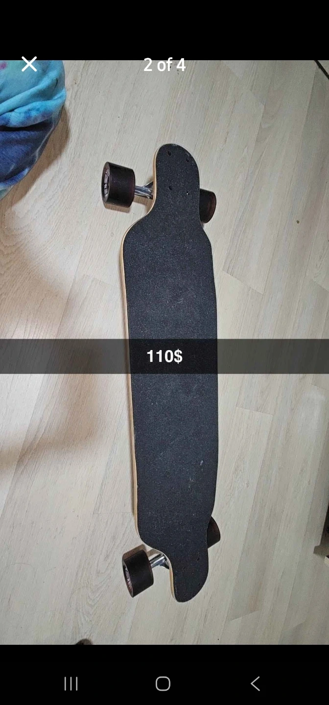 This longboard features a cool skull and rose graphic. It's built for cruising with smooth-rolling wheels. Deck is wood with grip tape.