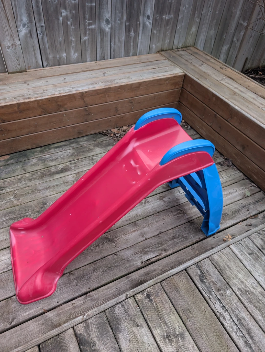 This is a Little Tikes toddler slide. It's made of durable plastic and designed for young children. Perfect for indoor or outdoor fun!