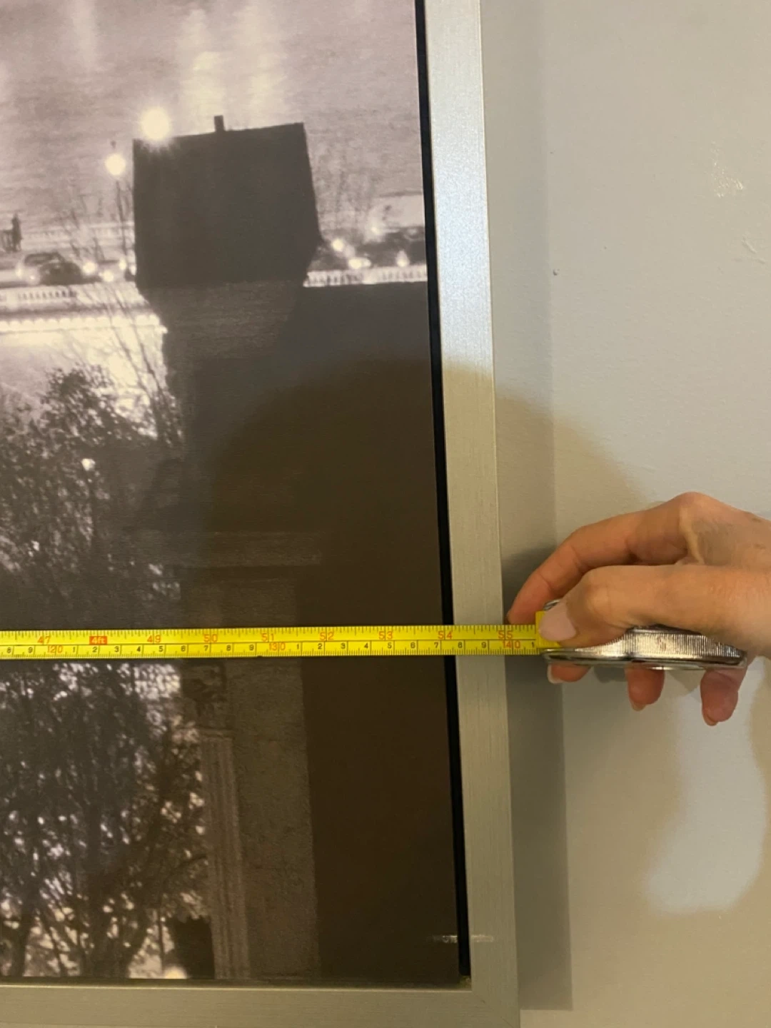 This framed wall art depicts the Paris skyline with the Eiffel Tower. Silver-toned frame. Approximate dimensions: 40 inches wide by 28 inches tall.$80.00 perfect condition , please excuse where it’s hanging , we are moving and just posting stuff , pick up in Newmarket