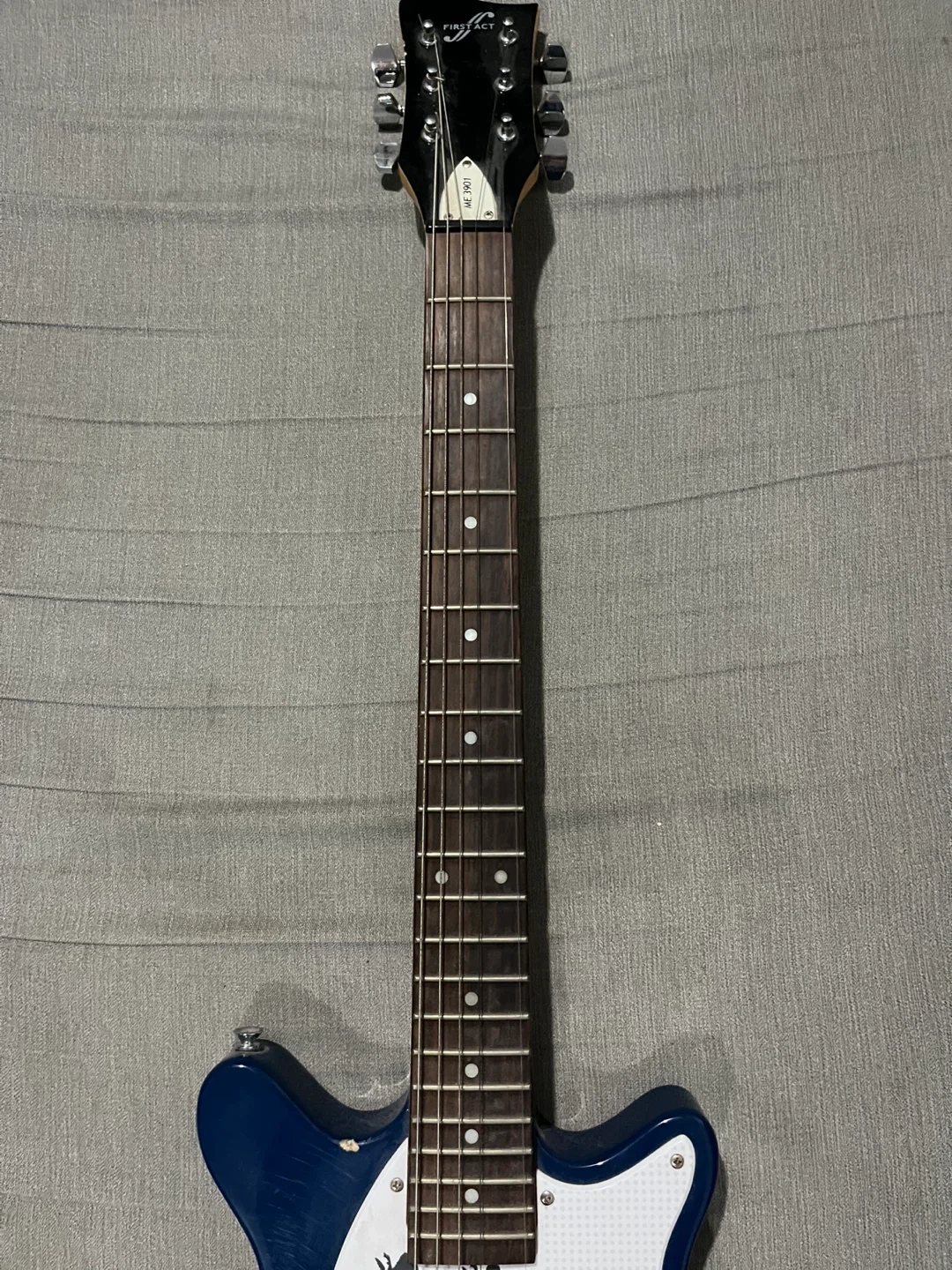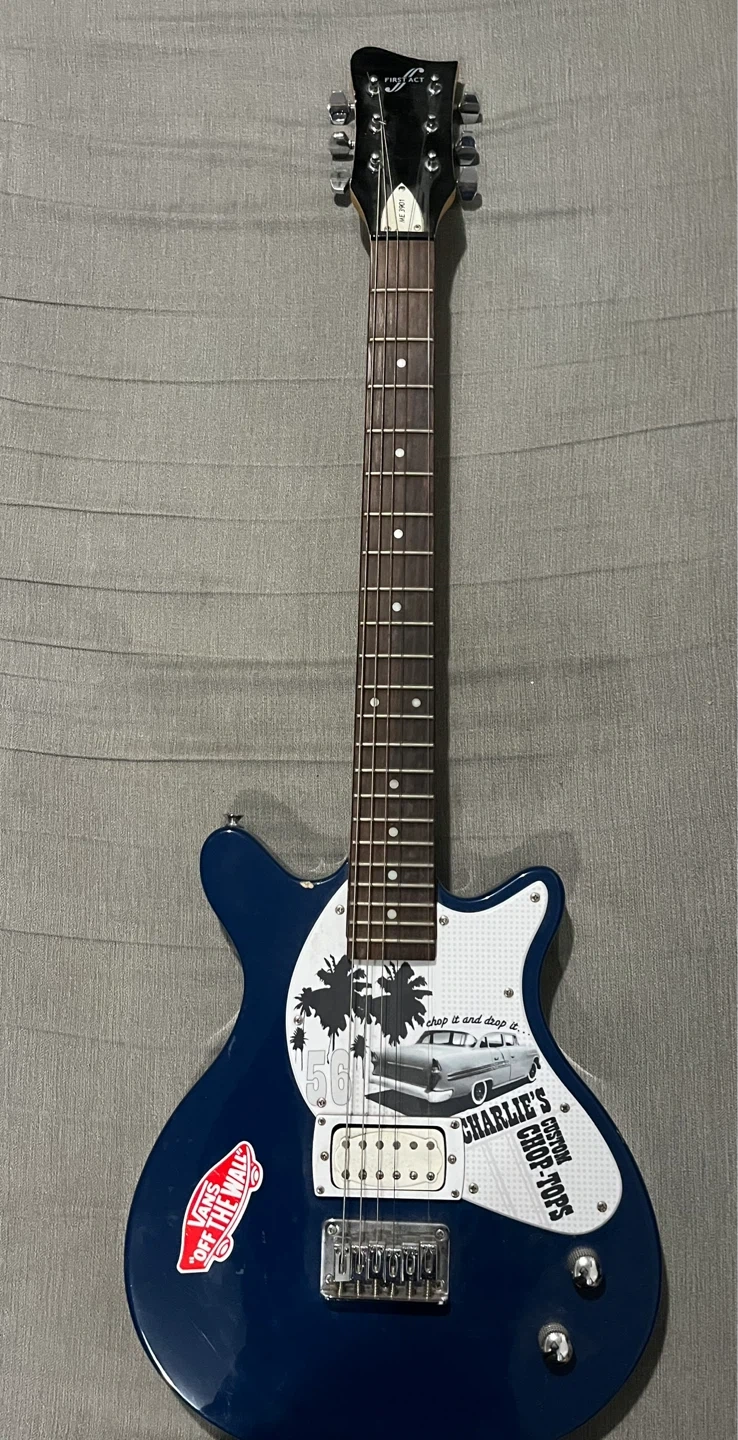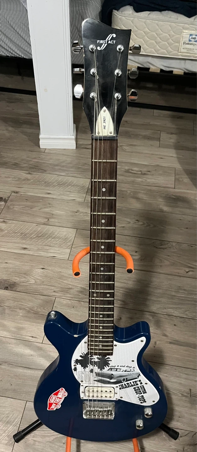 First Act Me 3901 Electric Guitar in good and solid workable condition. Has the odd chip, marker on the back and missing one string and no strap but In overall beautiful shape. Everything can be seen in the photos.