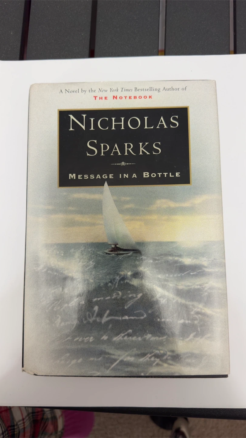 Message in a Bottle, a paperback novel by Nicholas Sparks. This book is part of his bestselling works. A great read for those who enjoy heartfelt stories.